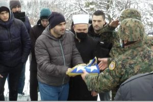 Zastavu sa tabuta lijepo umotanu pripadnici OS BiH predali su jednom od sinova rahmetli profesora Karalića.