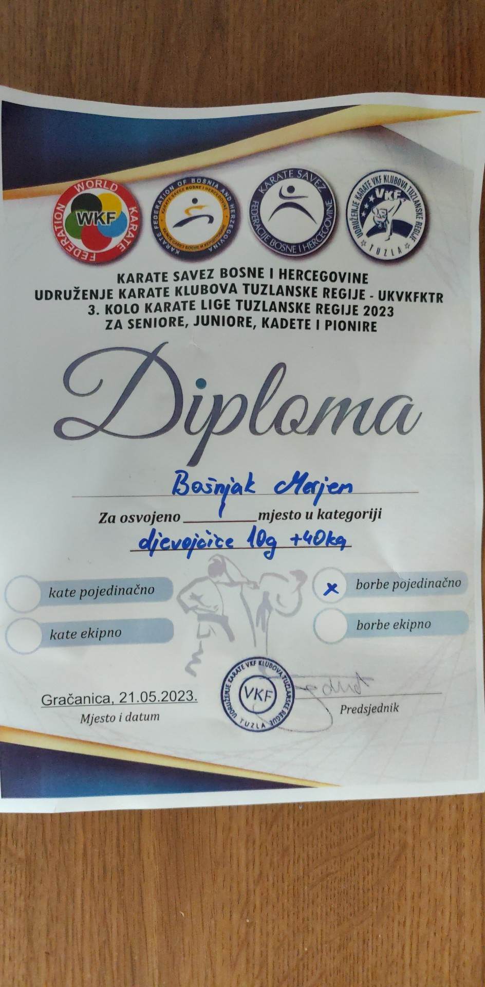 Jučer/nedjelja 21.05.2023.godine nastupali smo na 3. kolu Tuzlanske regije u Gračanici. Organizator je UDRUŽENJE KARATE VKF KLUBOVA TUZLANSKE REGIJE I karate klub *Gračanica* iz Gračanice. Turnir je okupio 27 klubova sa preko 430 takmičara sa 500 prijava.