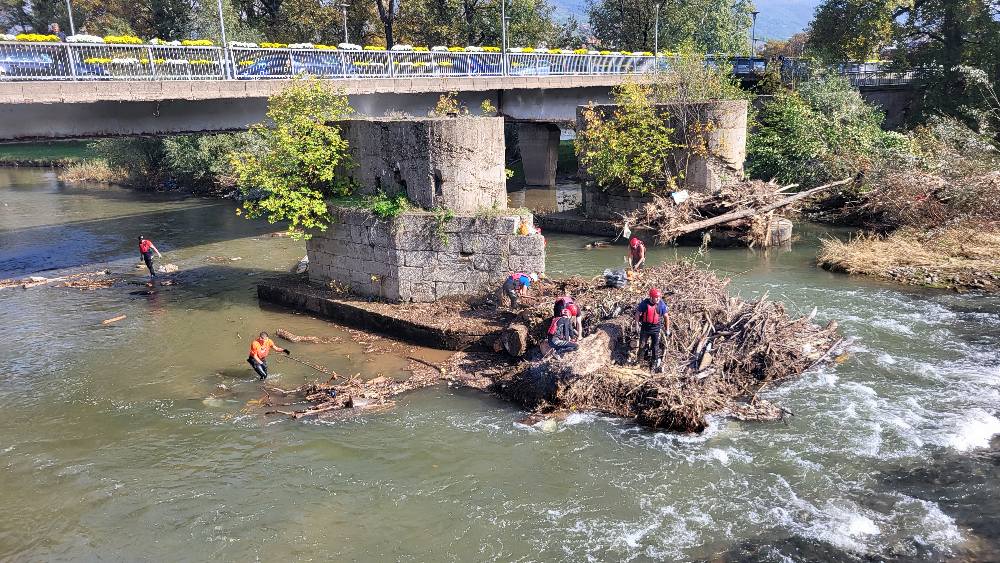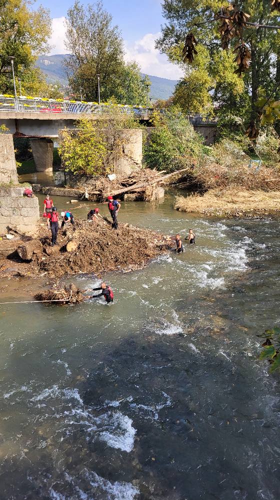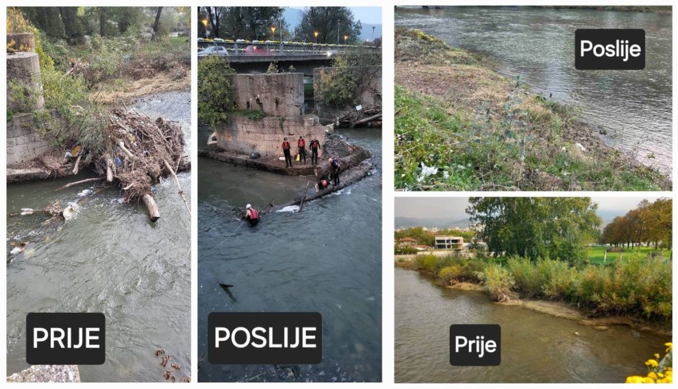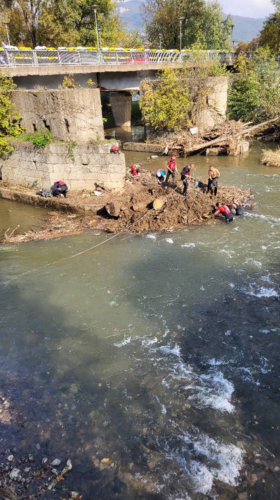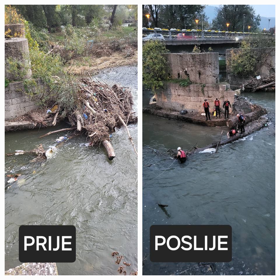 Vještinama i specijalistickom opremom članova Interventne spasilačke službe želimo iskoristiti na otklanjanju velikih nanosa stabala drveća i smeča na kule Dervenog mosta na Bilmišću I time
