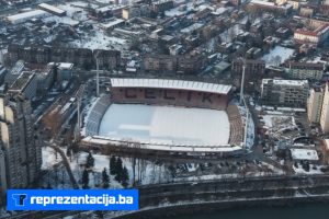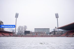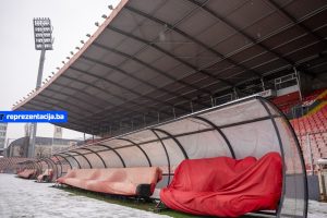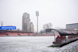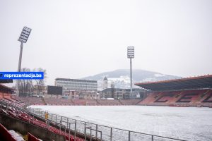 Snijeg i kiša koji padaju u Bosni i Hercegovini zabijelili su i Stadion Bilino Polje u Zenici.
