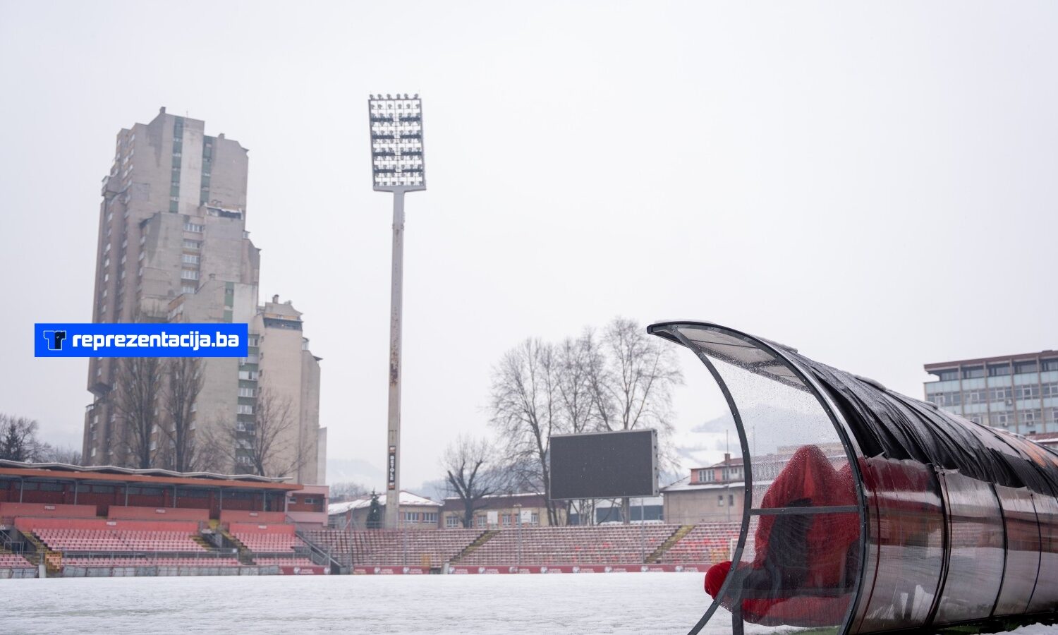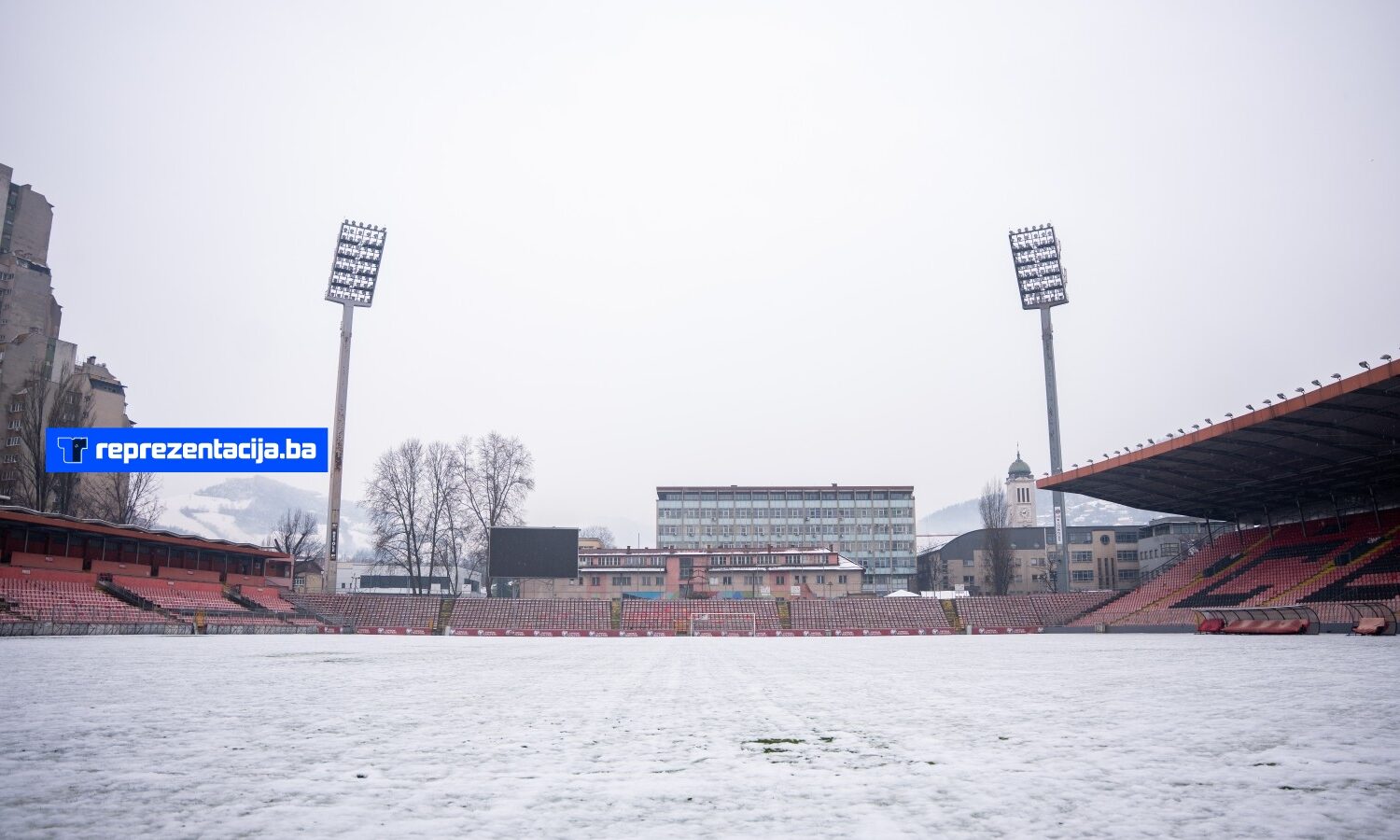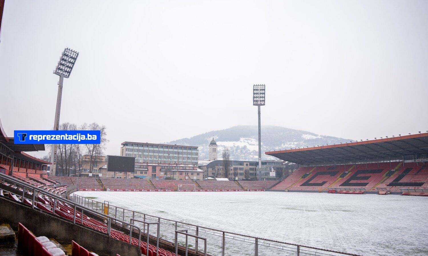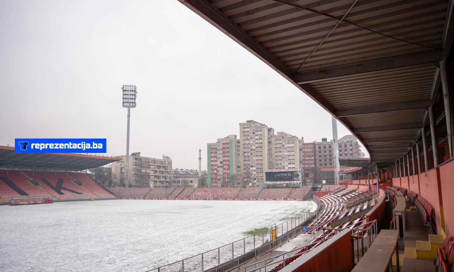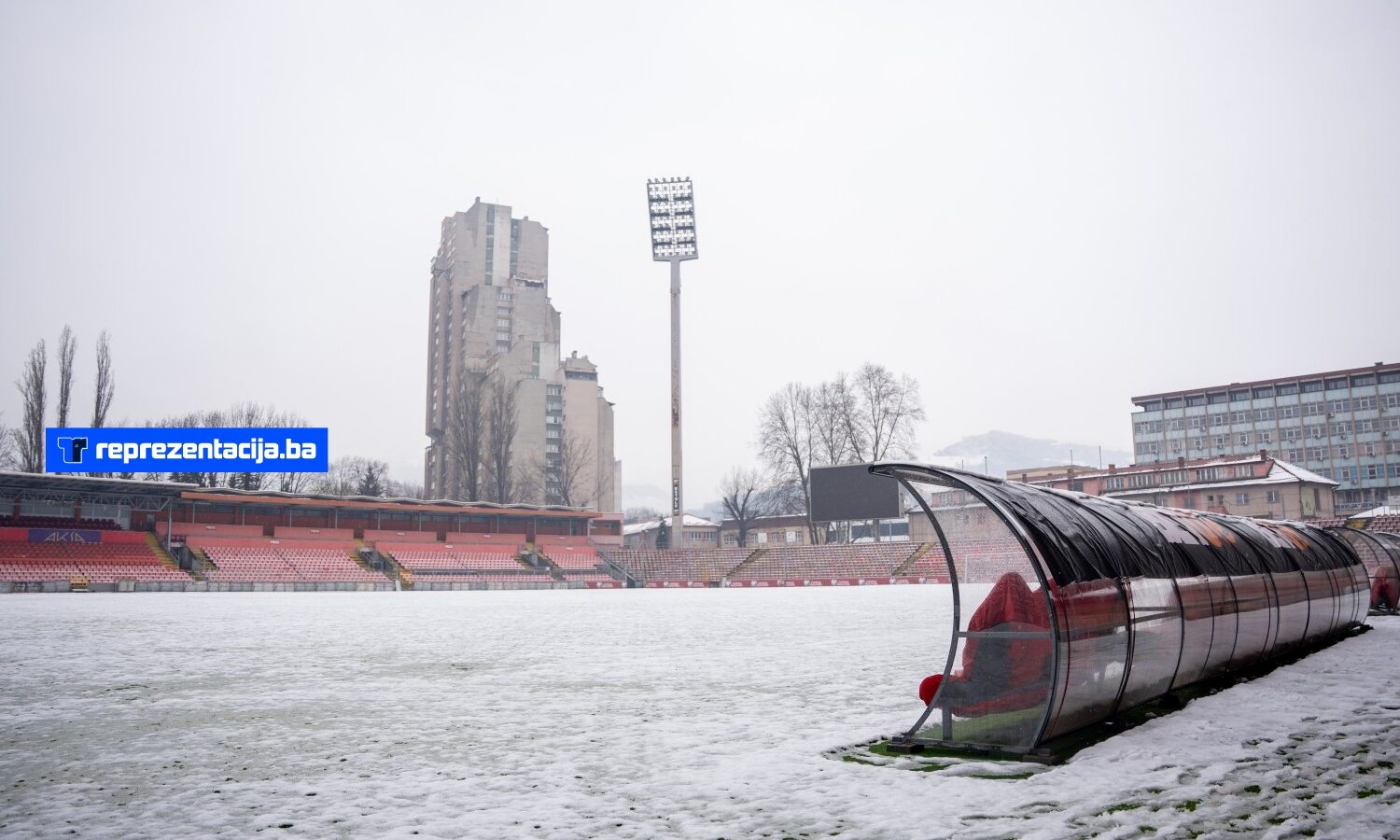 Snijeg i kiša koji padaju u Bosni i Hercegovini zabijelili su i Stadion Bilino Polje u Zenici.
