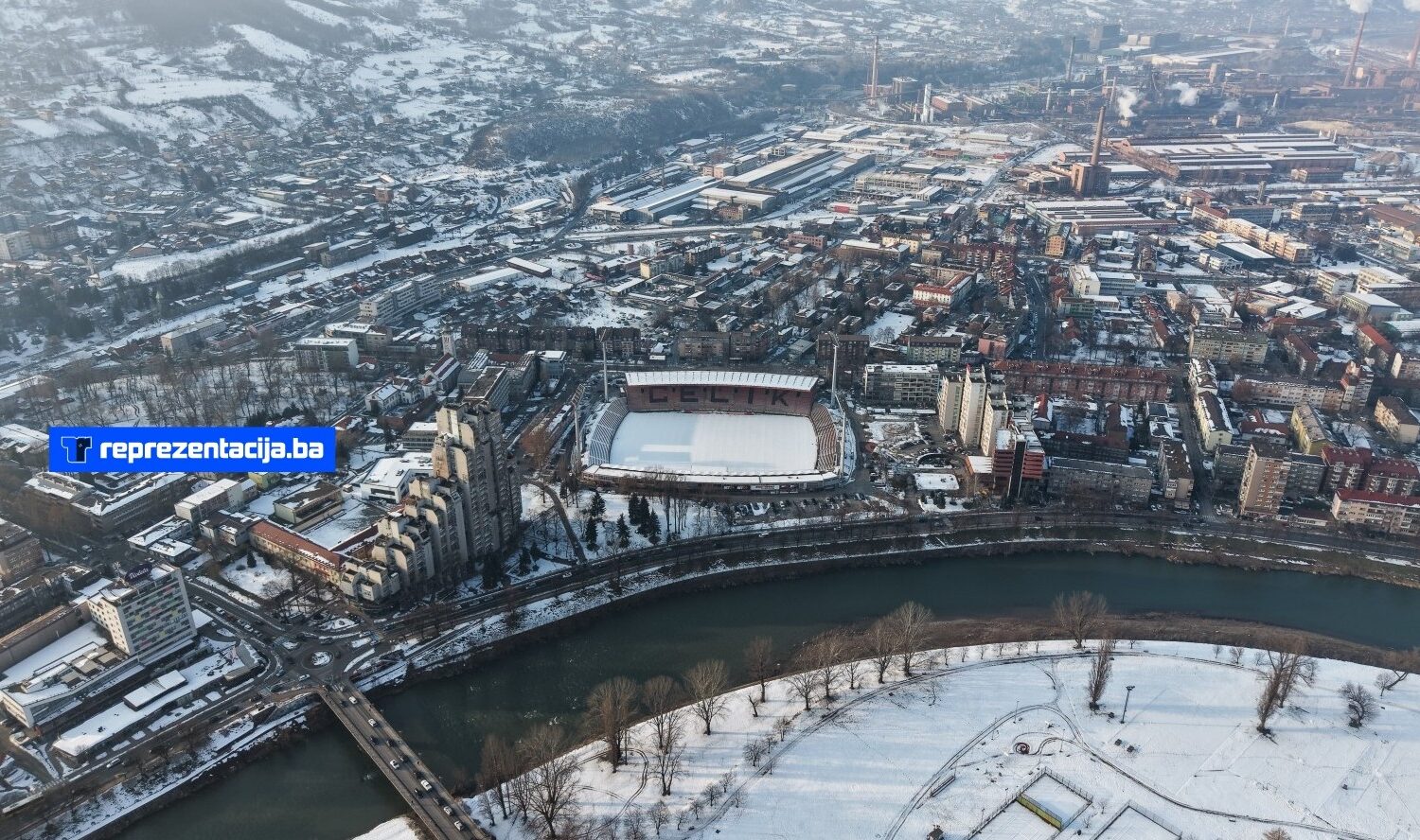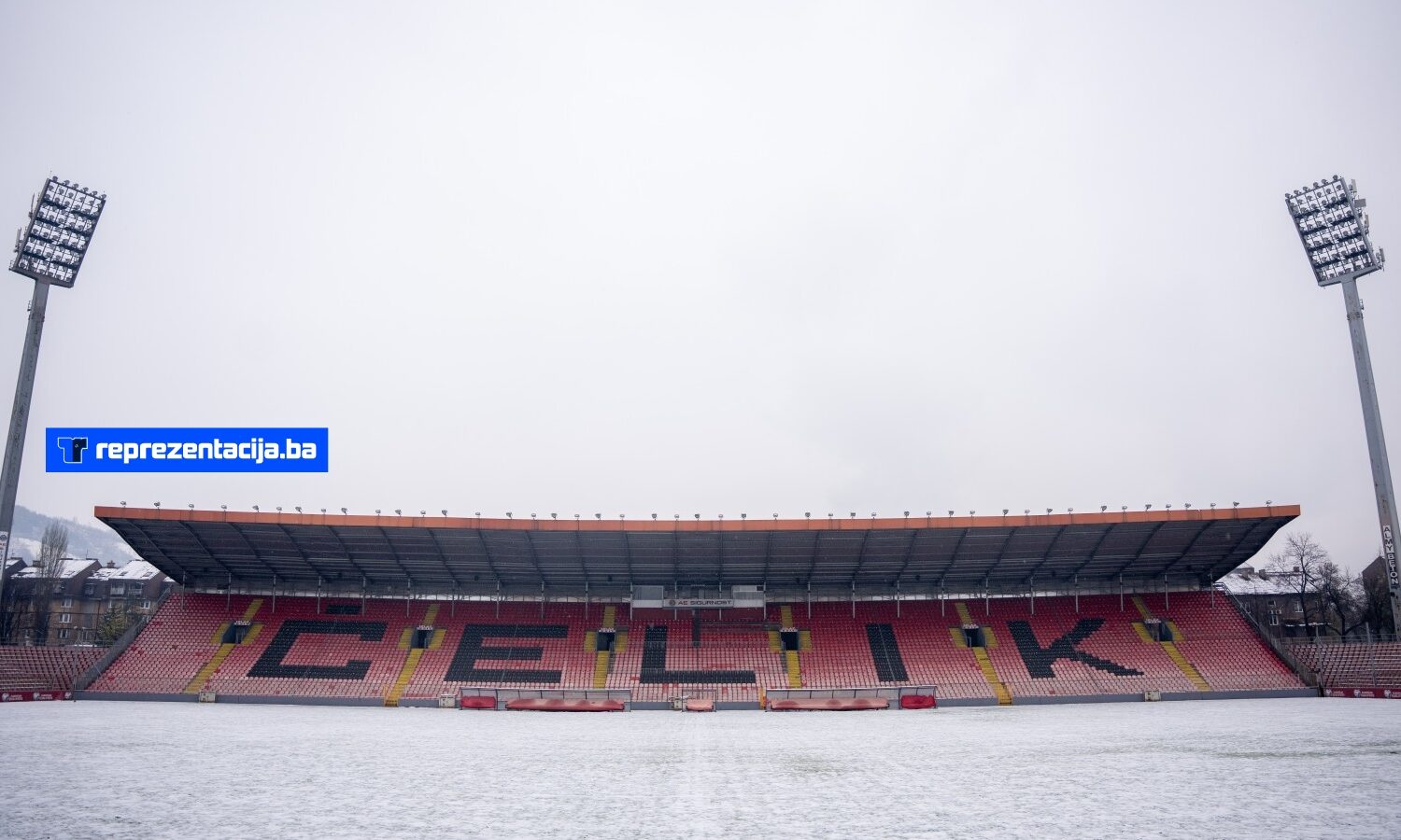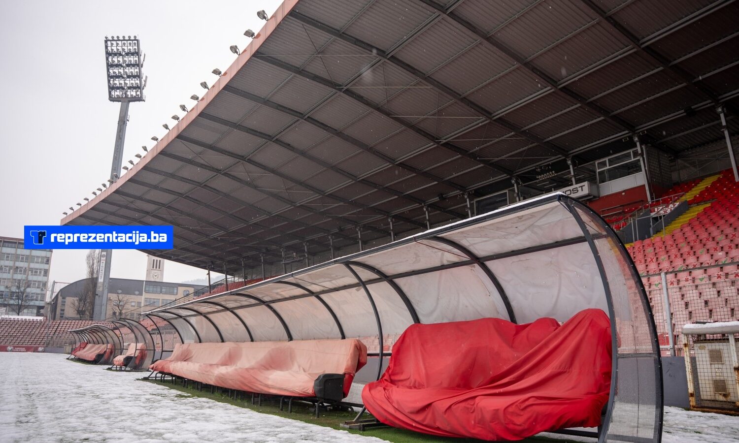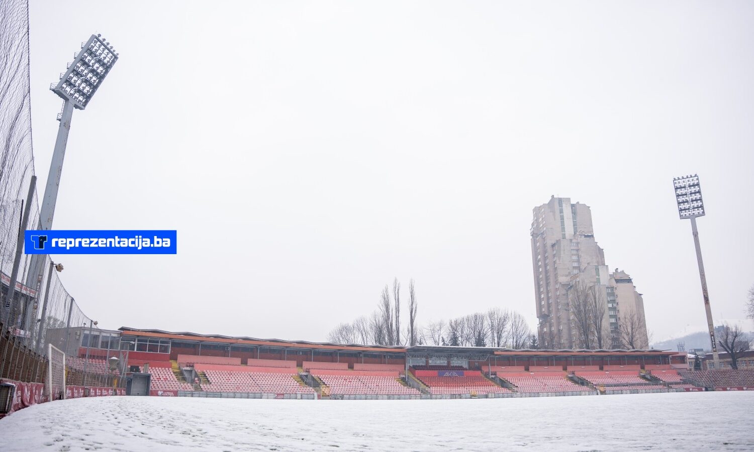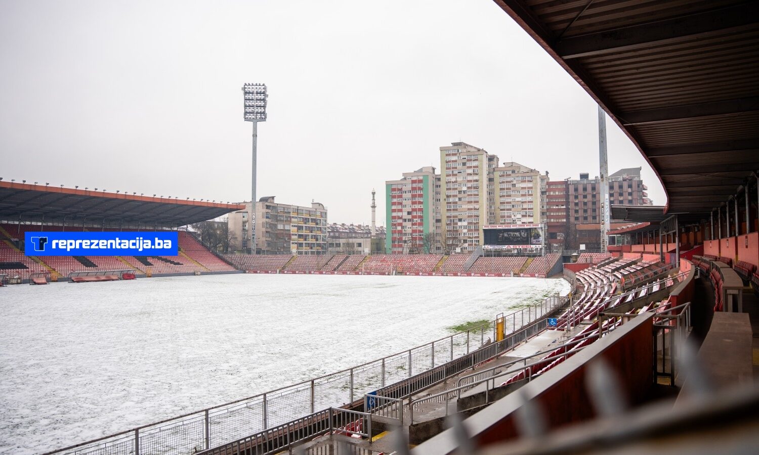 Snijeg i kiša koji padaju u Bosni i Hercegovini zabijelili su i Stadion Bilino Polje u Zenici.