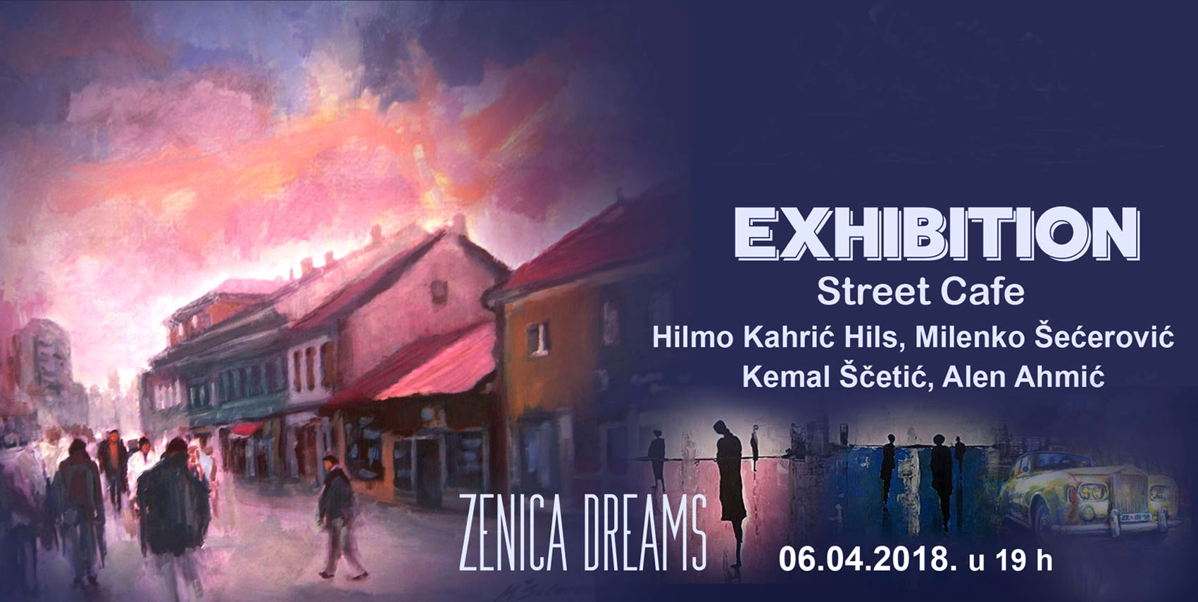 Hilmo Kahrić Hils učenik Mersada Berbera uvjek nas vraća u renesansu sa mnogo patine i zlatnih tonova.Alen Ahmić sa svojim eksperimentisanjem bojom i kompozicijama ima slobodan potez sa snažnim porukama i asocijacijama.Kemal Ščetić umjetnik koji ima izvanredan spoj likovne forme i crtačkih elemenata.Ambijent u kojem smo postavili izložbu Street Cafe je star preko 100 godina sa austrougarskom arhitekturom i upotpunjuje ovu postavku izložbe, rock balade u obradama Hise…sve je to Zenica Dreams.