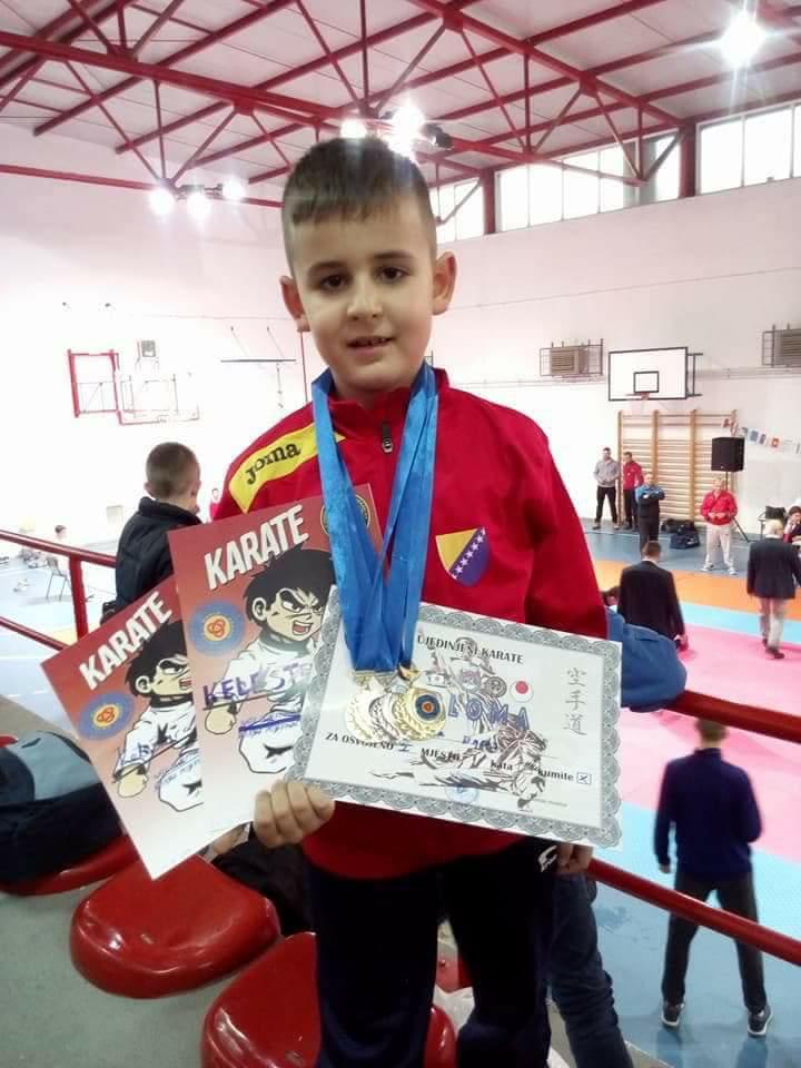 FOTO: Fenomenalan uspjeh za zenički Karate klub Alfa – Karatisti Alfe su u Bosanskom Šamcu u tzv. Ligi šampiona učestvovali sa 14 takmičara u pojedinačnoj i ekipnoj konkurenciji i osvojili ukupno 27 medalja, od toga 17 zlatnih, četiri srebrene i šest bronzanih medalja. Na početku takmičenja dodjeljene su plakete za trenera Rešida Durmiša nosioca crnog pojasa 5. dan, te za najbolje takmičarske rezultate u 2017. treneru Berinu Durmišu, crni pojas 4.dan.
