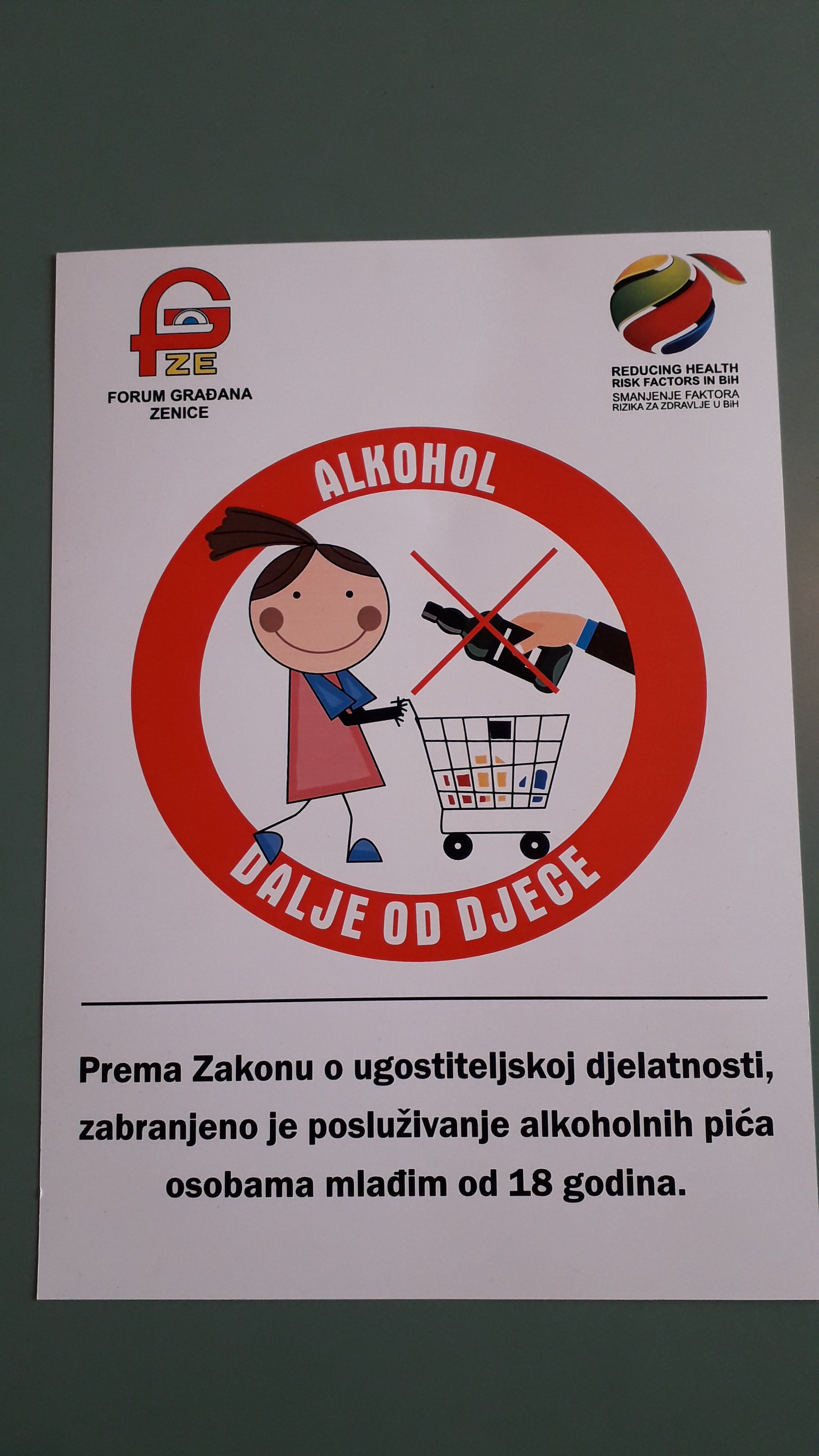 Podsjećanja radi, prema zakonima BiH, zabranjena je prodaja alkoholnih pića osobama mlađim od 18 godina. Vlasnici su dužni da u svim prodajnim i ugostiteljskim objektima stave obavijest o tome, te ukoliko sumnjaju da se radi o maloljetnoj osobi, izvrše kontrolu starosne dobi -, saopštili su iz projektnog tima o osnovnim naznakama iz projekta