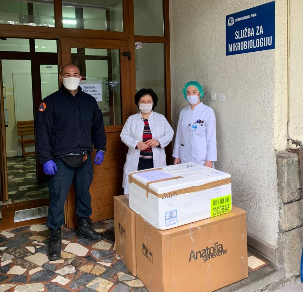FOTO: FUCZ isporučila testove na korona virus i Kantonalnoj bolnici Zenica nakon osposobljavanja laboratorija – Pripadnici Federalne uprave civilne zaštite isporučili su još 8.100 testova na korona virus. Raspodjela ovih testova izvršena je u skladu s naredbom koja je donijeta na jučerašnjoj 7. hitnoj elektronskoj sjednici Federalnog štaba civilne zaštite (FŠCZ) po kojoj je Kliničkom centru Univerziteta u Sarajevu isporučeno 2.800, Univerzitetskom kliničkom centru Tuzla 1.800, Sveučilišnoj kliničkoj bolnica Mostar 1.500, dok je 2.000 testova isporučeno i Kantonalnoj bolnici Zenica koja je osposobila PSR labaratorij u kojem će se raditi testiranja na Covid-19.