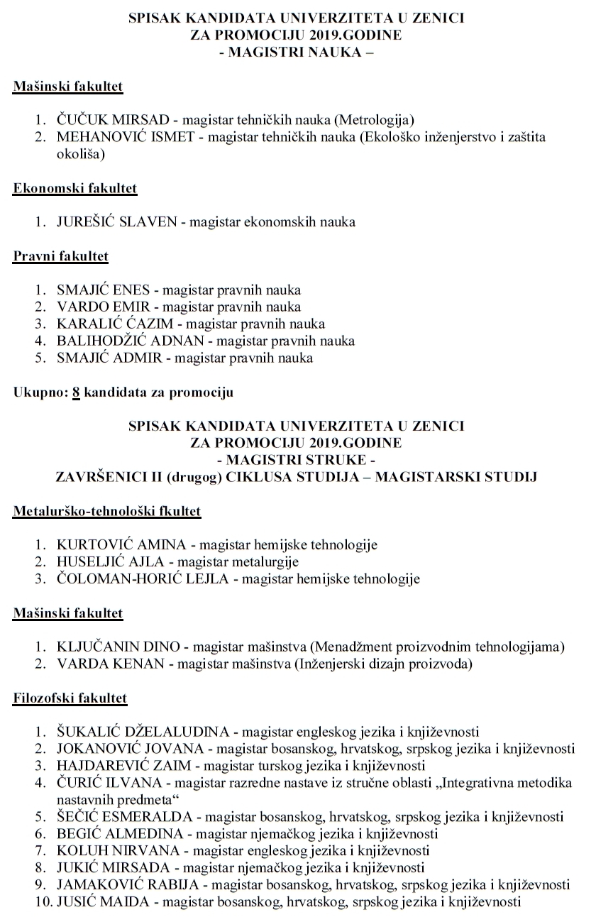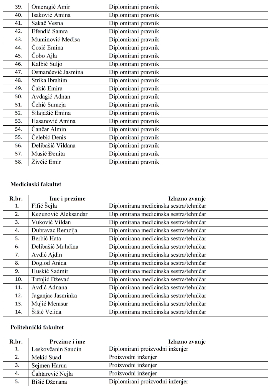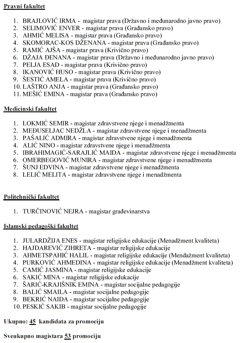 Pročitajte u nastavku kompletan spisak diplomanata i magistara UNZE:
