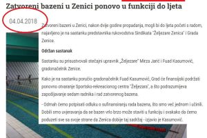 – Prema anketi koje su provedena prošle godine u srednjim školama u Zenici, više od 70 posto djece ne zna plivati. Niko nikada nije odgovarao za ovaj može se nazvati zločin nad djecom. Zenica mora dobiti moderan zatvoreni i otvoreni bazen ili će nam opet svakog vikenda djeca na obuku plivanja ići u Vitez i druga mjesta! napisao je Kurbegović.
