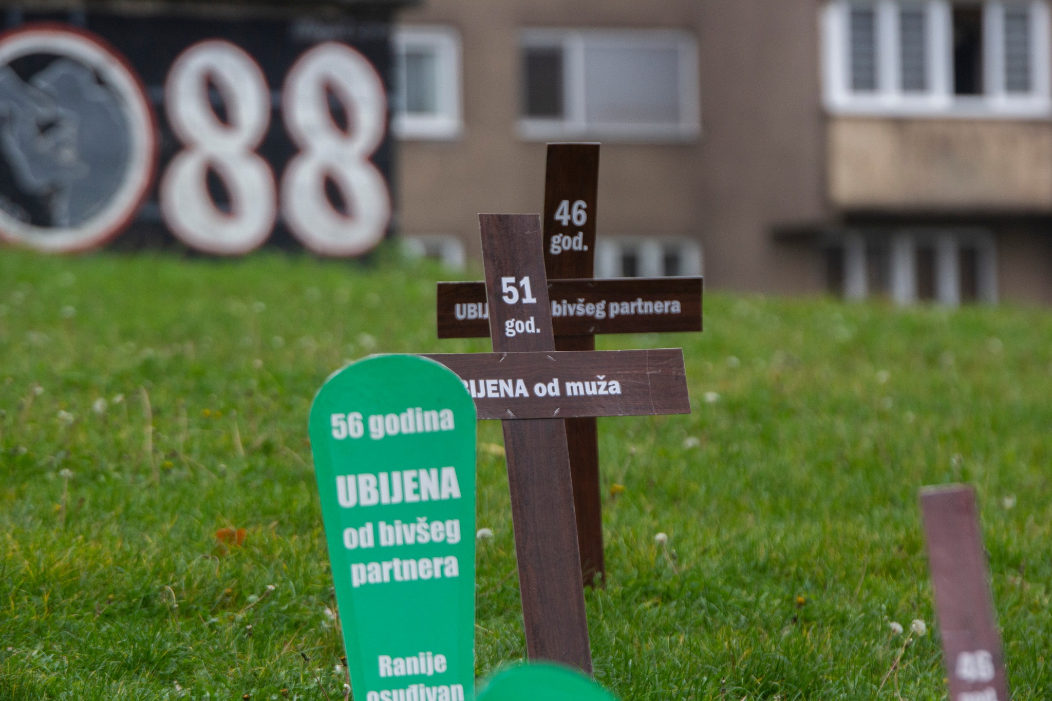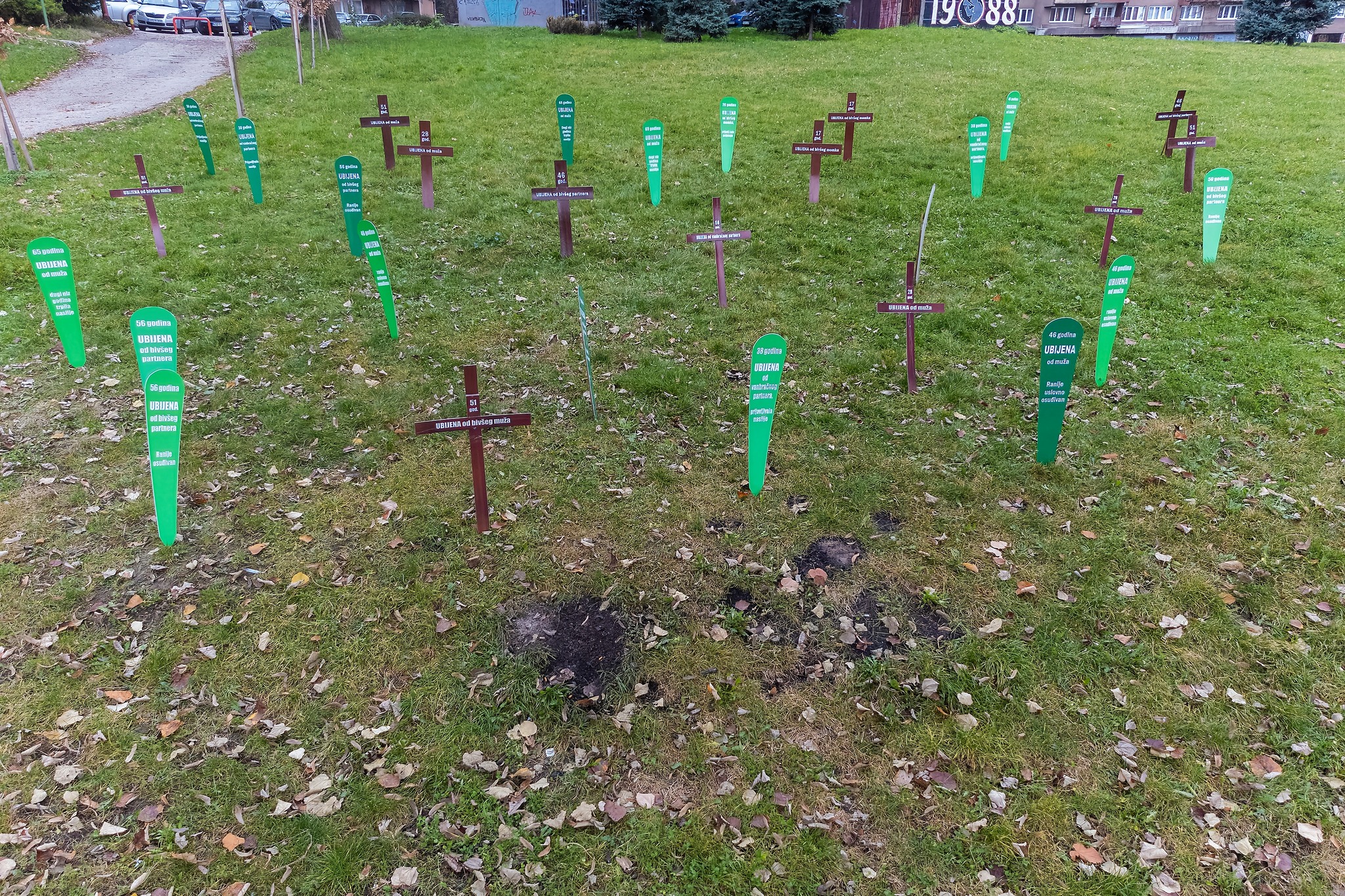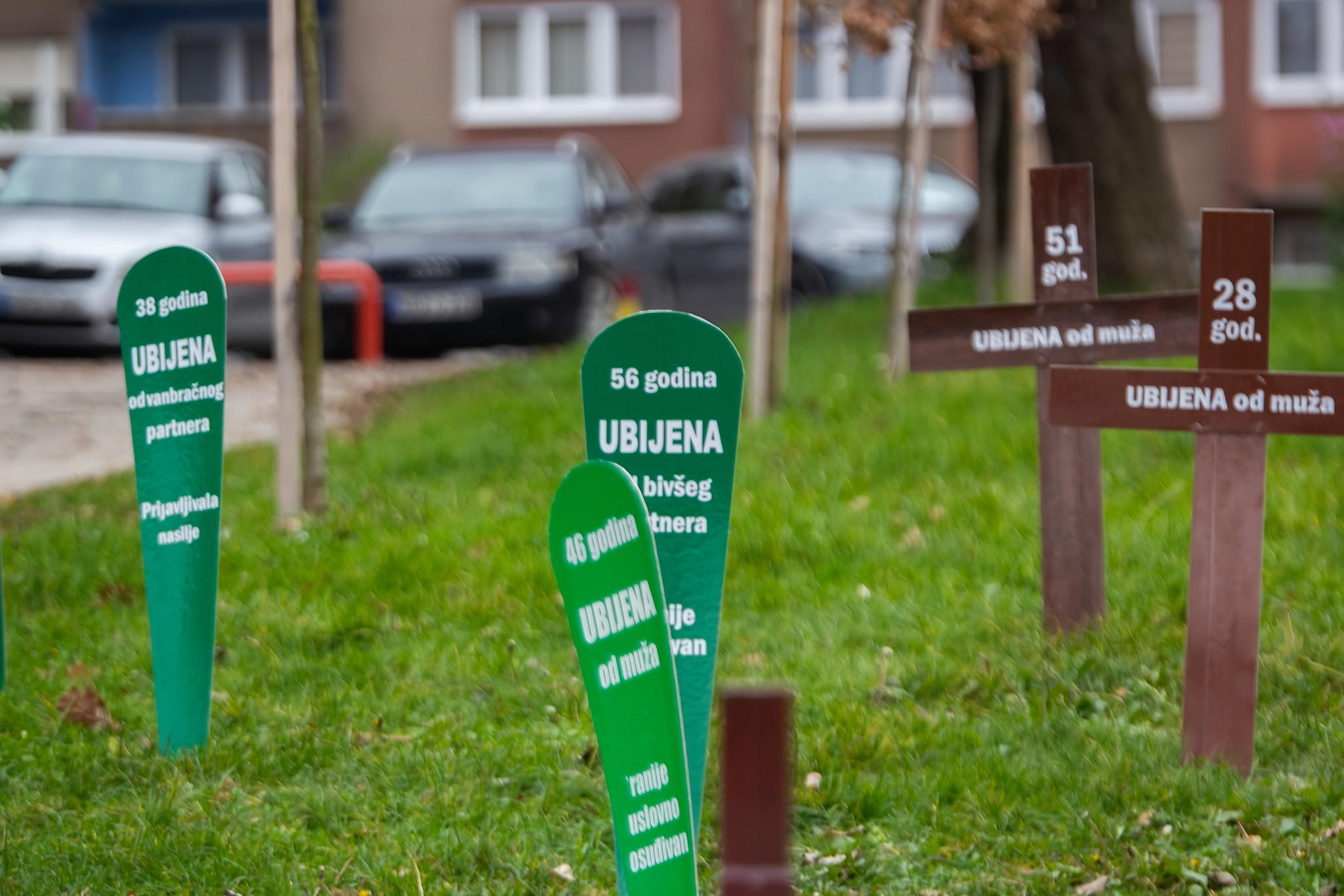 U centru Zenice aktivistice Centra ženskih prava postavile su “groblje femicida”, želeći “vrištećom šutnjom” upozoriti na problem femicida i pravdanja ubistava žena.