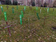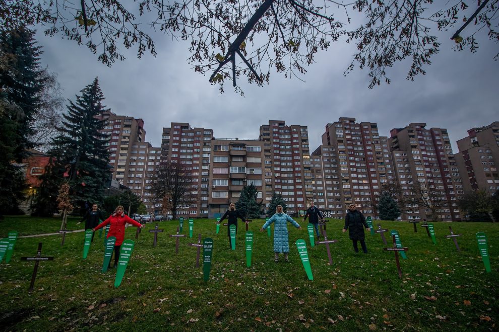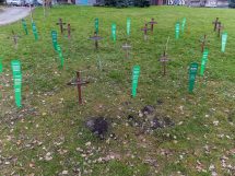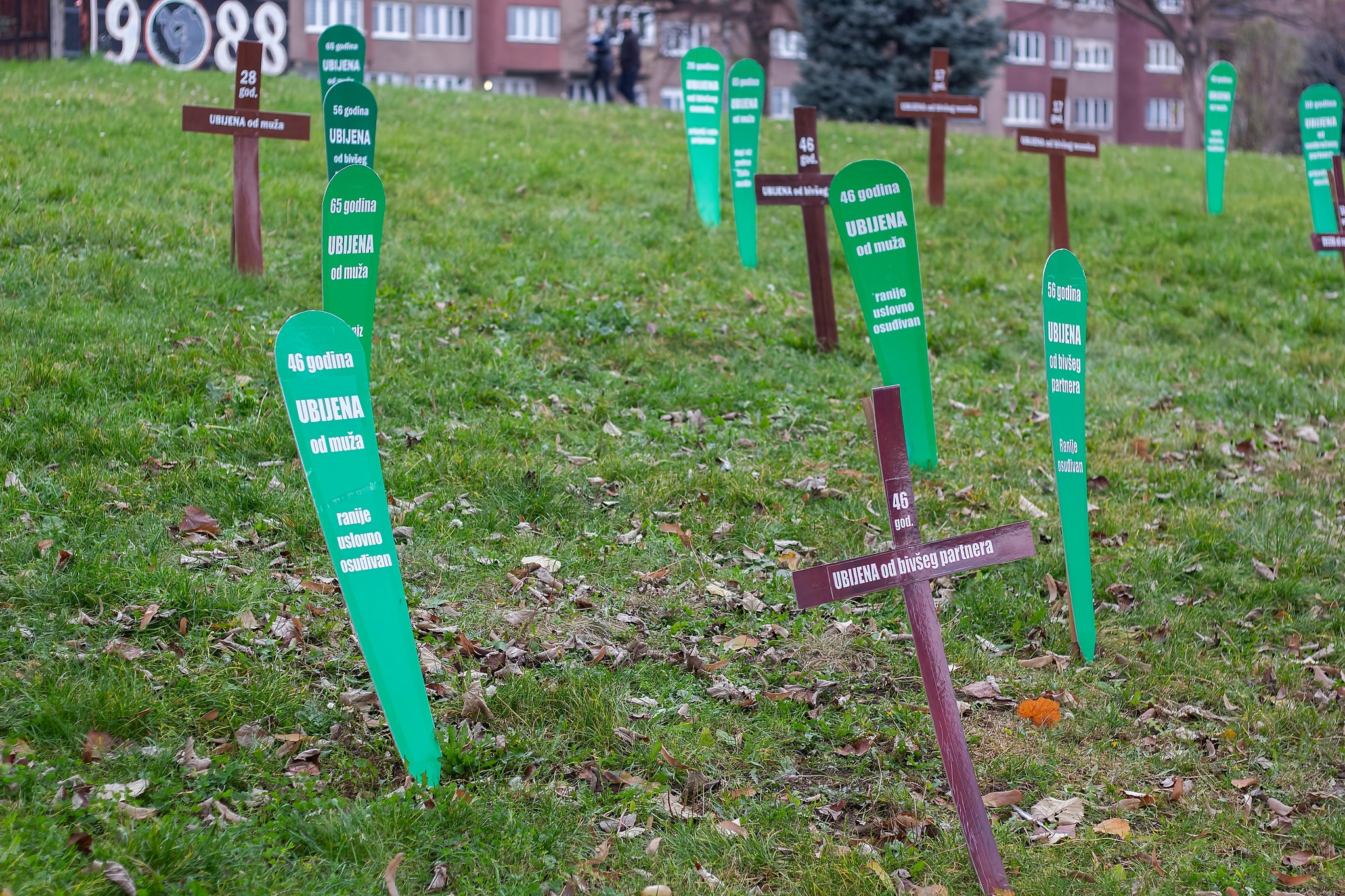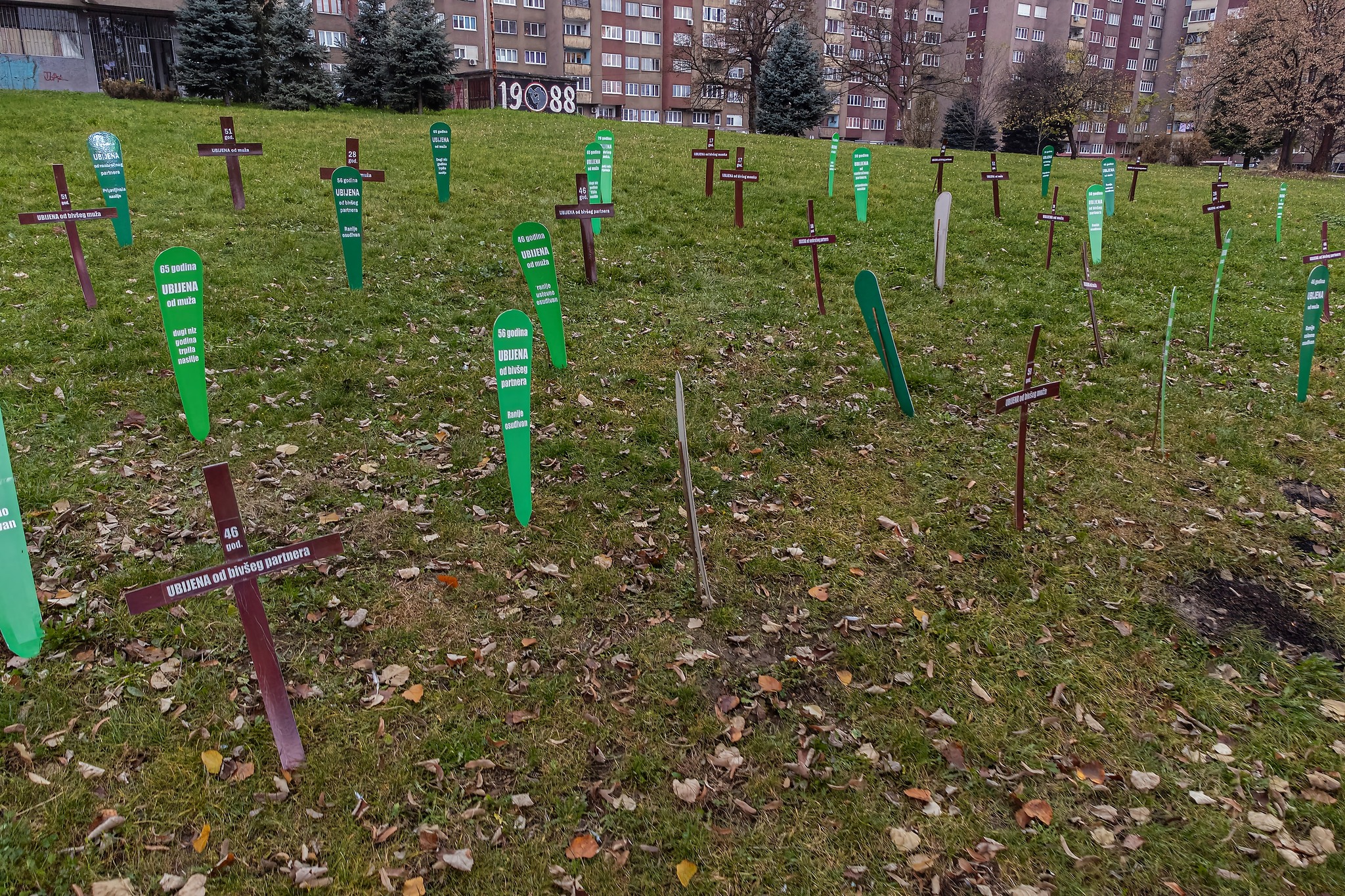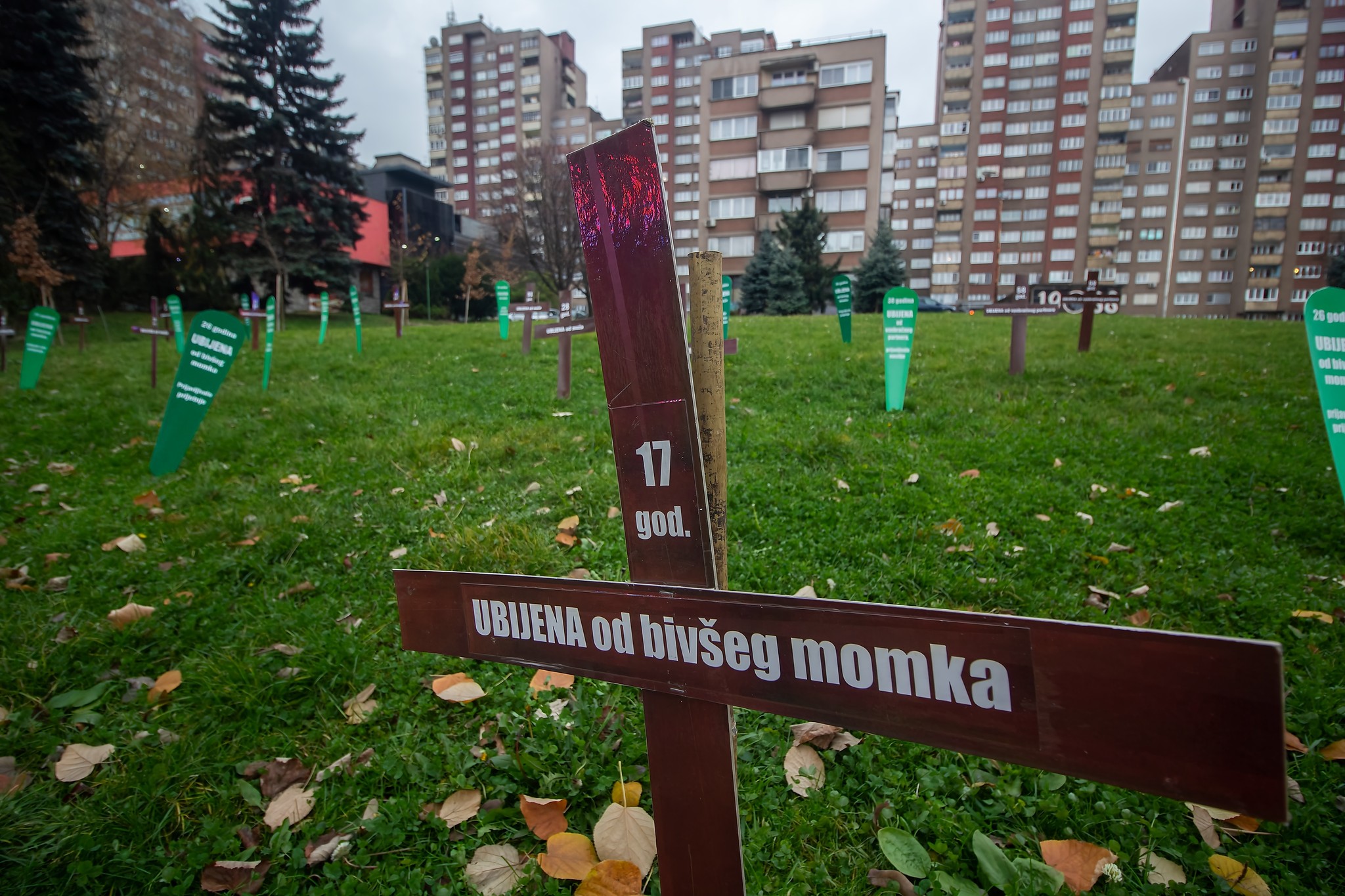 U centru Zenice aktivistice Centra ženskih prava postavile su “groblje femicida”, želeći “vrištećom šutnjom” upozoriti na problem femicida i pravdanja ubistava žena.
