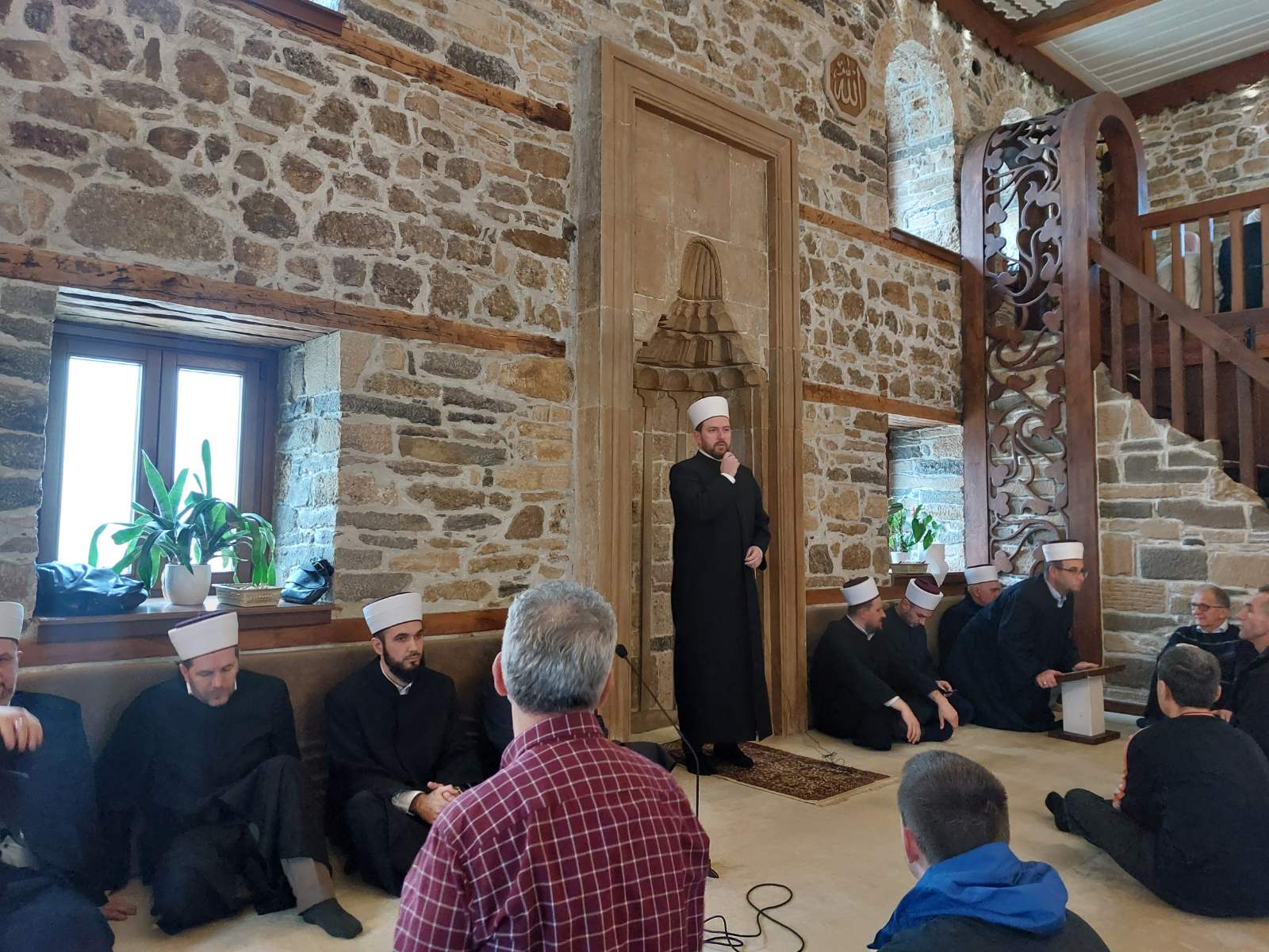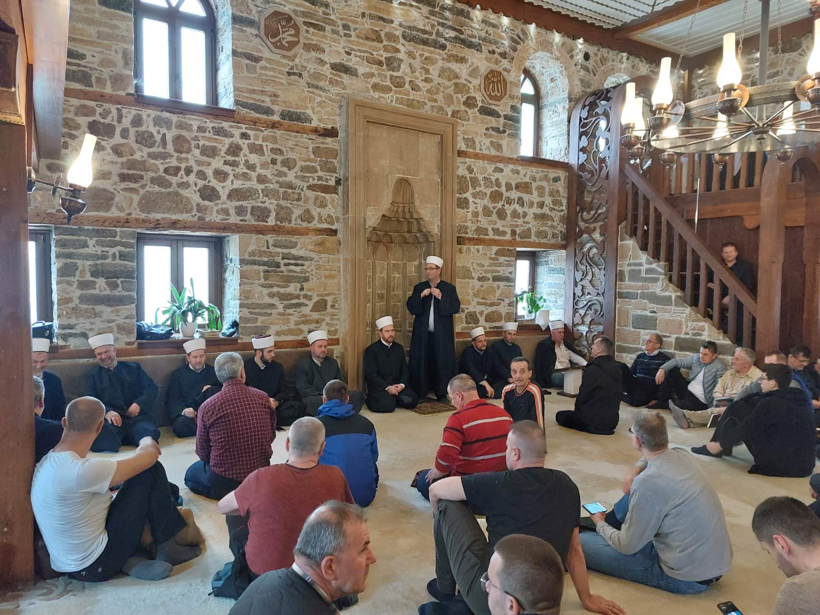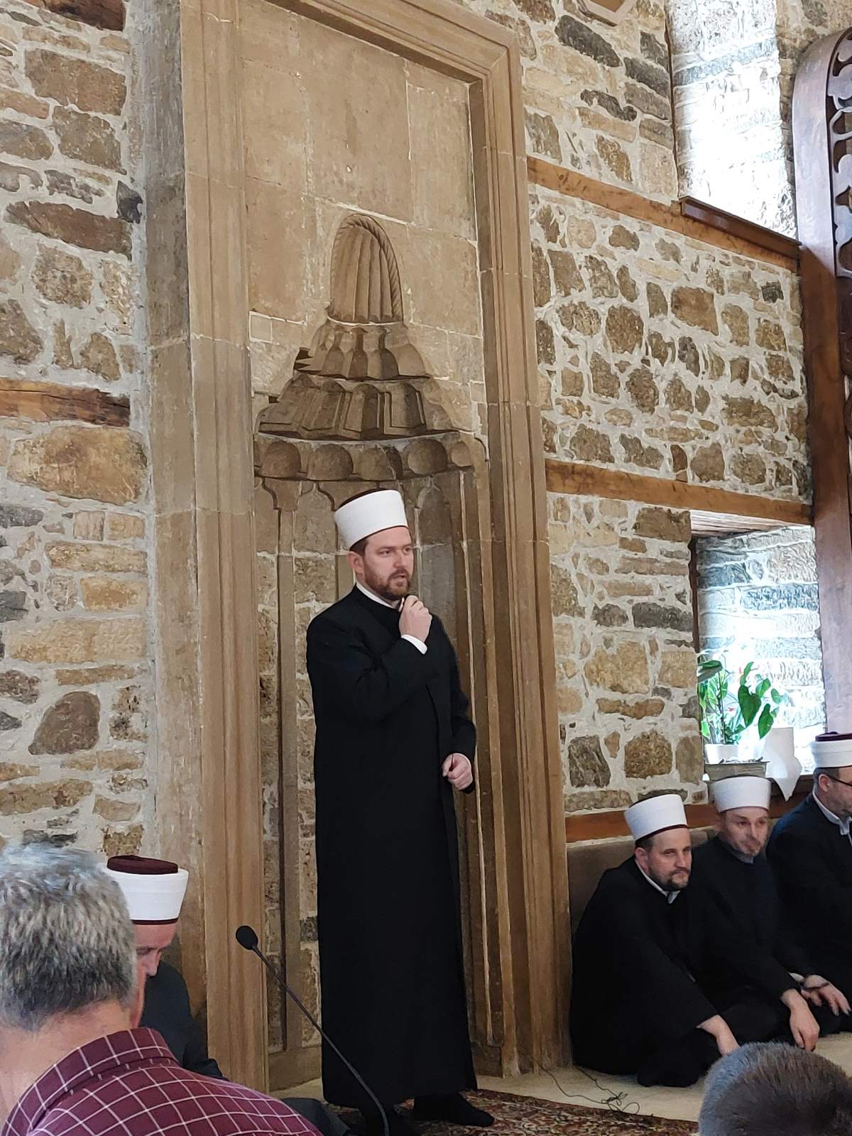 Prije početka mukabele, mnogobrojnim vjernicima koji slušaju učenje Časnog Kur’ana obratio se imam Čaršijske džamije hafiz mr. Enes ef. Beganović koji je poselamio prisutne i zaželio im mubarek ramazanske dane, te pozvao glavnog imama mr. Sumedin ef. Kobilicu da se obrati.