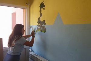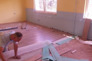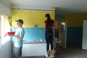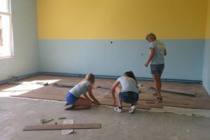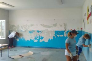 FOTO: Holandski studenti obnavljaju i opremaju školu u Perinom Hanu – Ovih dana je vrlo živo u školi “Aleksa Šantić” u Perinom Hanu. Radovi na zgradi “male” škole za učenike nižih razreda u Perinom Hanu i PŠ Dolača se privode kraju. Krov, stolarija, fasada su obnovljeni. Studenti iz Holandije na čelu sa Artom de Rusterom kreče učionice i postavljaju laminat.