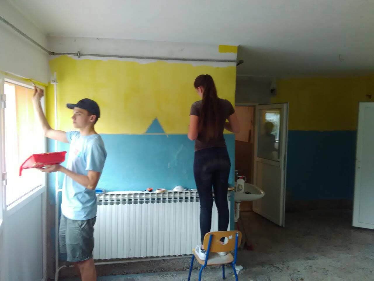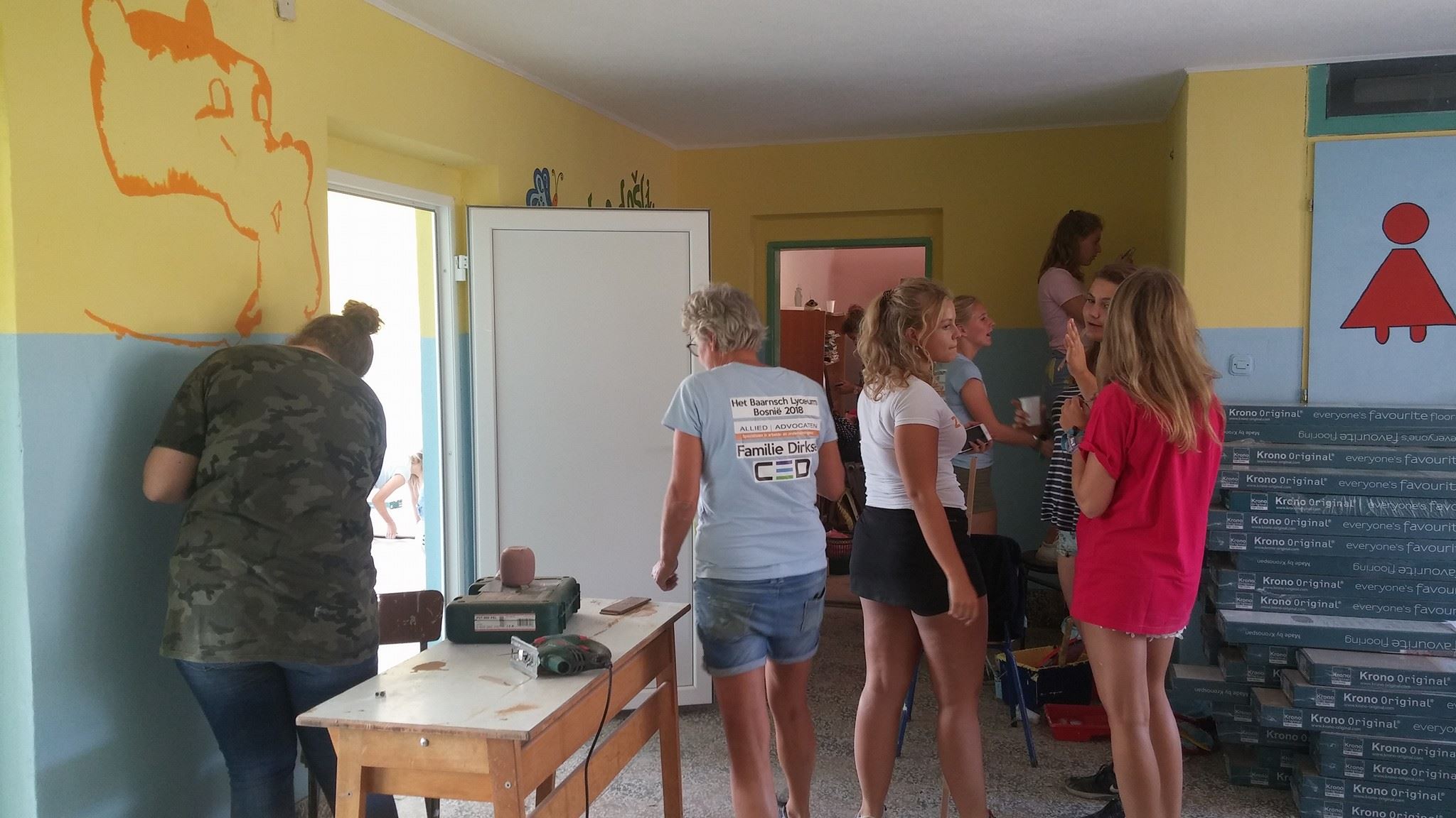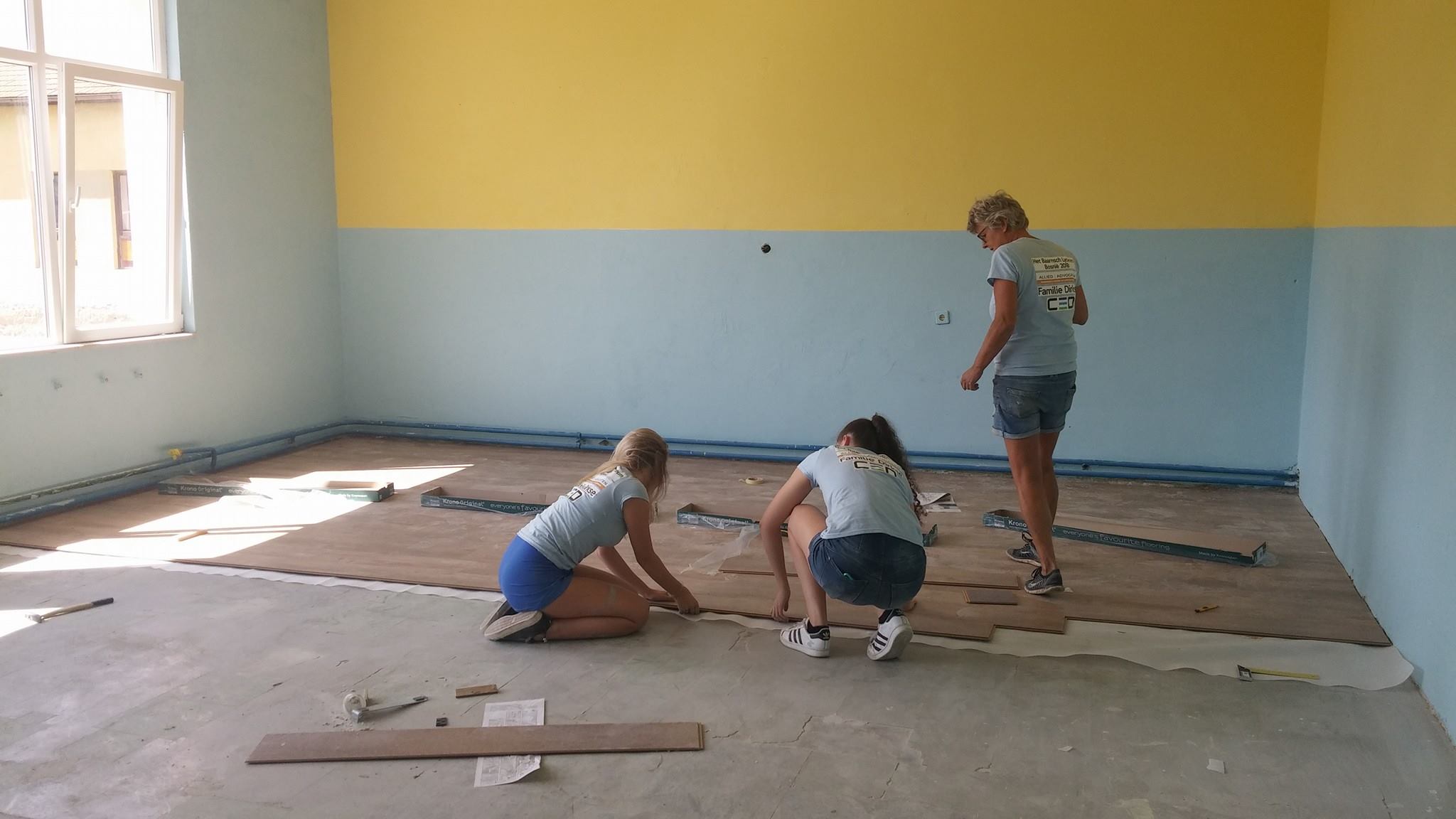 FOTO: Holandski studenti obnavljaju i opremaju školu u Perinom Hanu – Ovih dana je vrlo živo u školi “Aleksa Šantić” u Perinom Hanu. Radovi na zgradi “male” škole za učenike nižih razreda u Perinom Hanu i PŠ Dolača se privode kraju. Krov, stolarija, fasada su obnovljeni. Studenti iz Holandije na čelu sa Artom de Rusterom kreče učionice i postavljaju laminat.