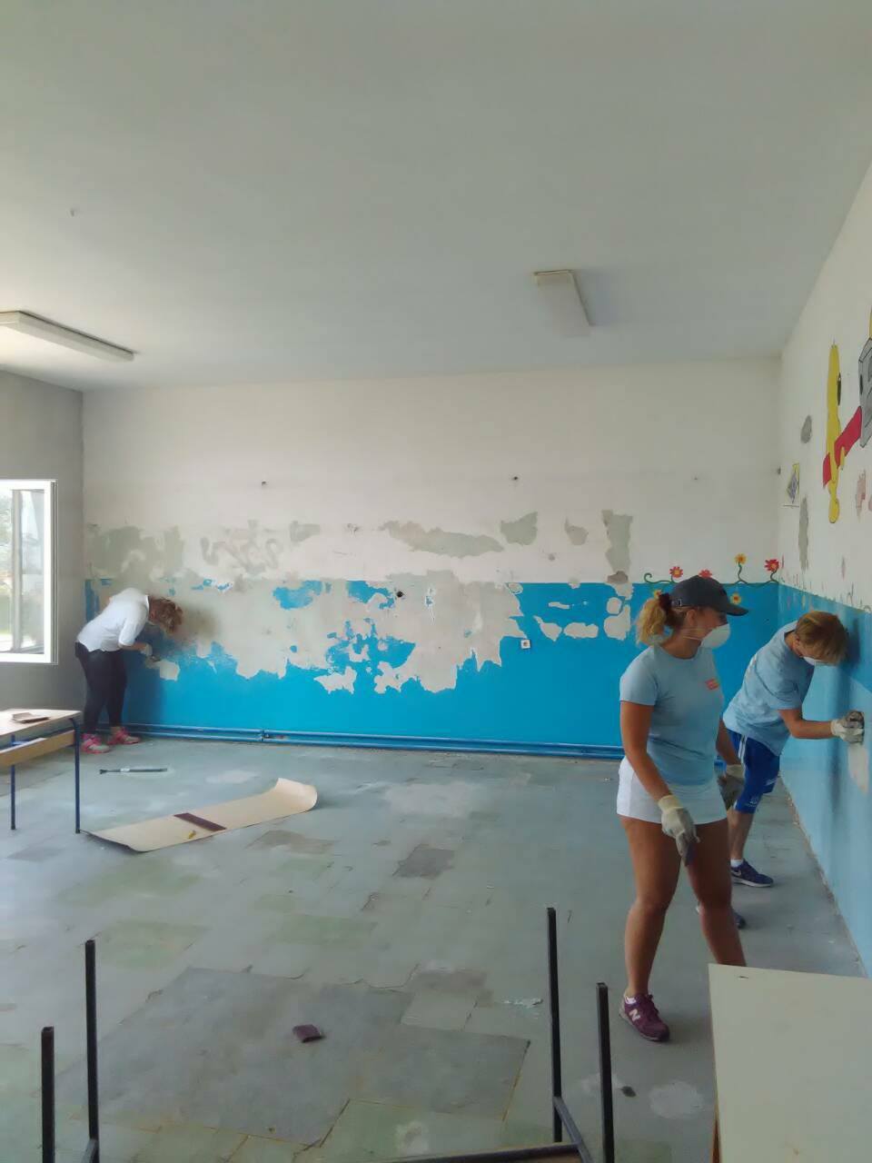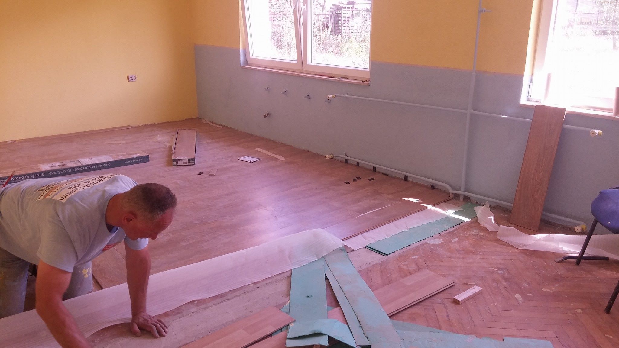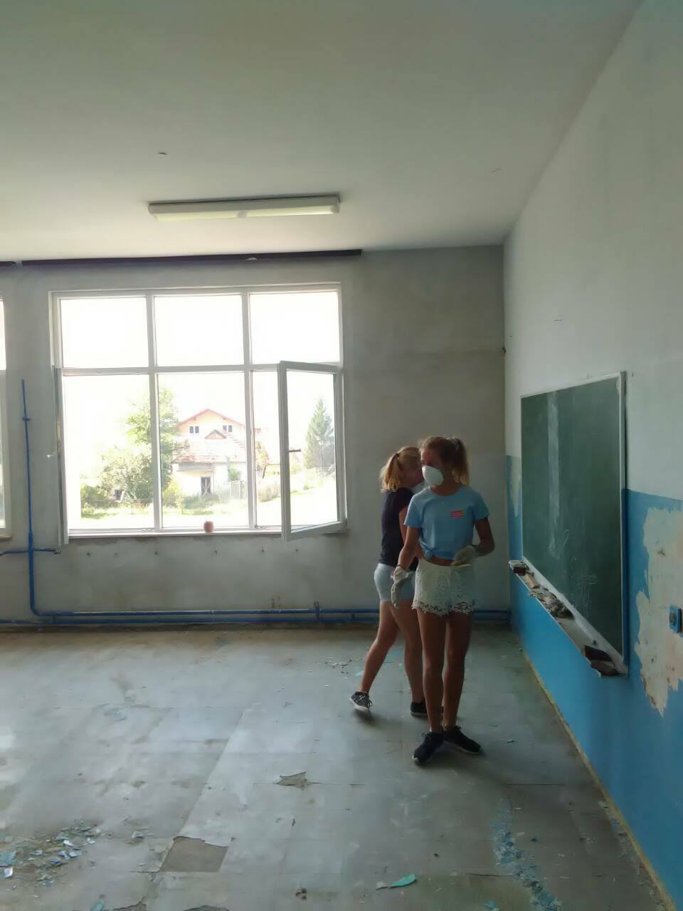 FOTO: Holandski studenti obnavljaju i opremaju školu u Perinom Hanu – Ovih dana je vrlo živo u školi “Aleksa Šantić” u Perinom Hanu. Radovi na zgradi “male” škole za učenike nižih razreda u Perinom Hanu i PŠ Dolača se privode kraju. Krov, stolarija, fasada su obnovljeni. Studenti iz Holandije na čelu sa Artom de Rusterom kreče učionice i postavljaju laminat.