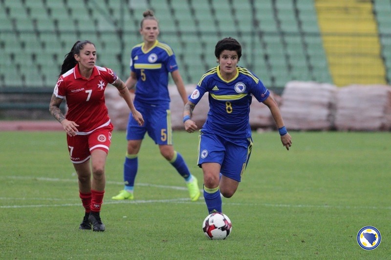 FOTO: I druga pobjeda bh.ženske reprezentacije u kvalifikacijama za EP – Milena Nikolić dvostruki strijelac – Ženska „A“ reprezentacija Bosne i Hercegovine pobijedila je danas na stadionu „Asim Ferhatović-Hase“ u Sarajevu Maltu sa 2:0 u susretu drugog kola kvalifikacija za Euro 2021.