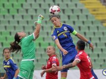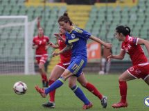 Merjema Medić u 80′ šalje loptu za Milenu Nikolić koja kreće sama ka protivničkom golu i postiže drugi pogodak za reprezentaciju BiH.
