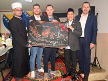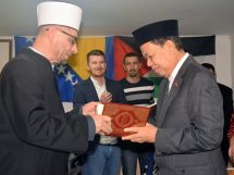 Ambasadoru Roem Kono su uručeni i simbolični pokloni ( zahvalnica, plaketa Prijatelj BiH, prehrambeni proizvodi koje proizvode firme iz Ričica i Pehara i crteži djece iz mekteba džemata Ričice).