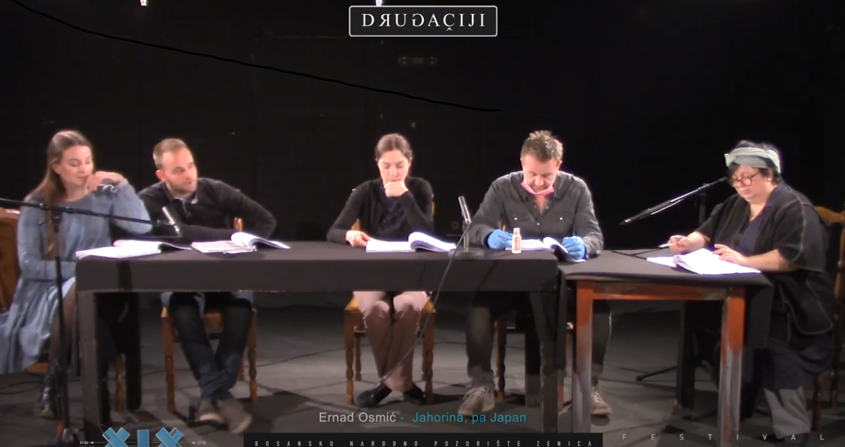 U 19. 30 sati u okviru Glavnog festivalskog programa bit će emitovano scensko čitanje dramskog teksta „Jahorina, pa Japan“ autora Ernada Osmića u režiji Lajle Kaikčije. U scenskom čitanju učestvuju glumci i glumice iz ansambla Bosanskog narodnog pozorišta Zenica: Robert Krajinović, Snežana Vidović, Adna Hasanić, Zlatan Školjić i Faketa Salihbegović-Avdagić.