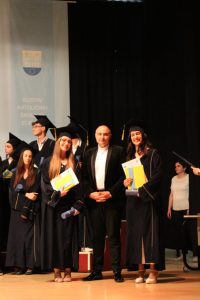 Prije svega, kako ne čestitati maturantima koji su, uprkos izazovima sve ove 4 godine, uspjeli sve nadvladati i danas biti glavni prisutni ovdje, kao najstariji učenici u školi, kao oni koji ne odustaju i ne spuštaju glavu dolje, već se dižu i onda kada padnu; a jedini poraz u životu je ne ustati nakon pada. Posebno vrijedi zahvaliti se našoj razrednici i svim našim profesorima, koji su, i kad je bilo teško, uvijek bili tu uz nas. Prenijeti znanje je umijeće, te mi je drago što smo mogli biti učenici profesora koji su imali upravu tu sposobnost, a kada nešto jednostavno nije išlo, jer ne može uvijek sve ići kako želimo, tada su imali više nego dovoljno razumijevanja za nas, čemu smo se mi uvijek radovali i naravno, bili zahvalni.