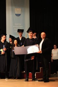 Mario je također dobitnik Godišnje nagrade „Petar Barbarić“, koja se dodjeljuje na nivou Sustava katoličkih škola za Europu, što njegov uspjeh čini još posebnijim. Obje nagrade uručio mu je ravnatelj našeg Centra, vlč. Vlatko Rosić, koji je u svom obraćanju čestitao svim maturantima, zahvalio roditeljima i profesorima, te svim učenicima poželio mnogo uspjeha i blagoslova u budućnosti.