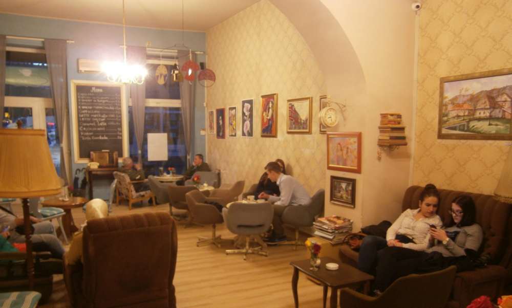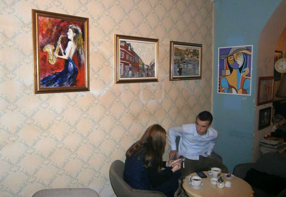 Foto: izložba galerije Meriscon Art – U Street Cafeu otvorena je grupna izložba galerije MerisCon Art, a organizator je generalni menadžer Hari Maslić. Jedan dio slika nastao je na likovnoj koloniji u Zenici koju je organizovala ova galerija, a izložene su i slike koje su bile u postavci velike grupne izložbe članova MerisCon Art-a u Historijskom Muzeju BiH u Sarajevu.