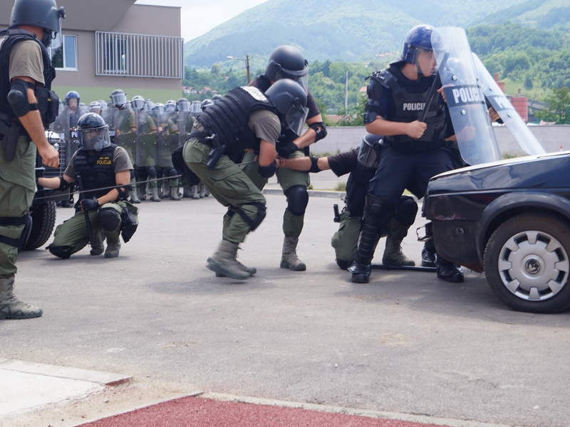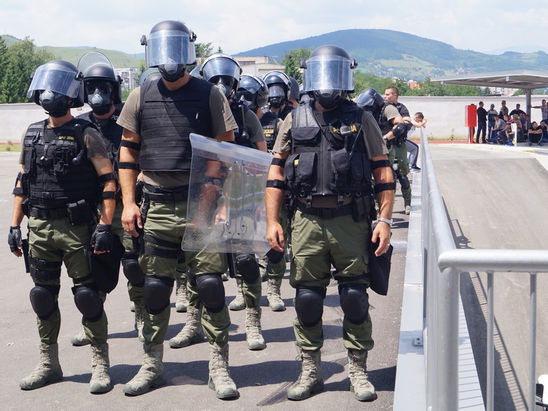 FOTO: Izvedena zajednička vježba pripadnika jedinica MUP-a ZDK na kontroli masa i prevenciji masovnih nereda – Danas, 25.07.2018. godine, sa početkom u 14,00 sati, u Zenici, u krugu novoizgrađenog objekta Centra za obuku policijskih službenika i smještaj Specijalne policijske jedinice, izvedena je združena pokazna vježba pripadnika Specijalne policijske jedinice i Jedinice za sprječavanje narušavanja javnog reda i mira u većem obimu Ministarstva unutrašnjih poslova Zeničko-dobojskog kantona.