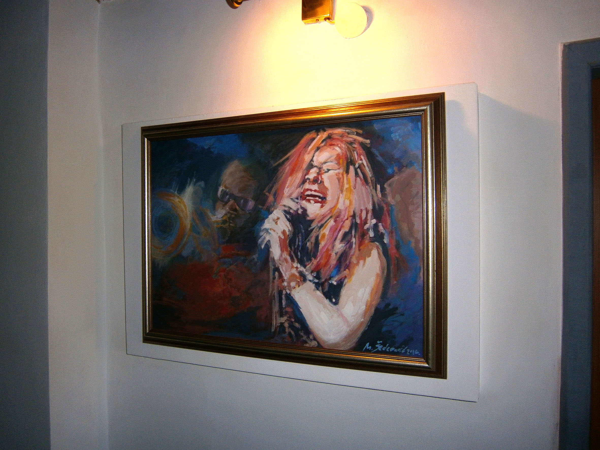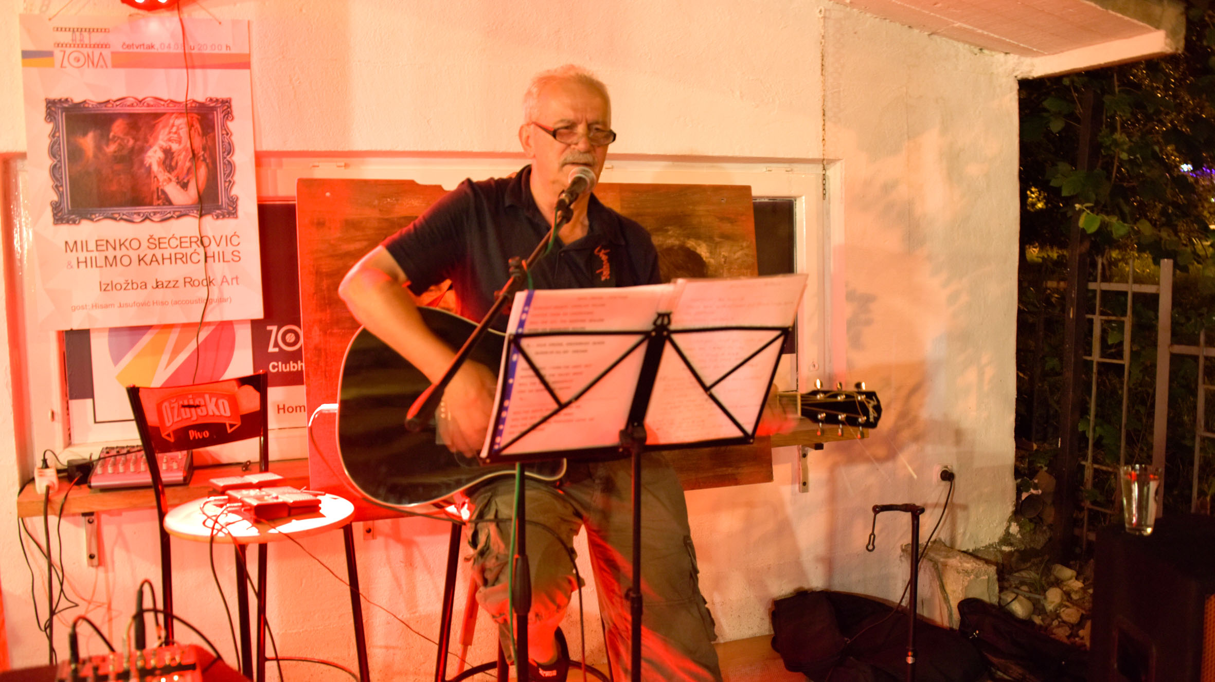 Foto: Jazz Rock Art by Milenko Šećerović & Hilmo Kahrić Hils – Izložbu JAZZ ROCK ART by Milenko Šećerović & Hilmo Kahrić Hils, koja je postavljena u kultnom prostoru „ ZONA ART “ u Zenici, otvorio je ugledni rock analitičar Sead Pašić naglasivši da Milenko Šećerović i Hilmo Kahrić Hils u svojim likovnim emocijama stvaraju djela posvećena rock izrazu i rock aksiologiji, sa likovima uhvaćenim u trenu vremena , jer su te i takve vrijednosti neprolazne kako sa estetičkog tako i sa etičkog aspekta.