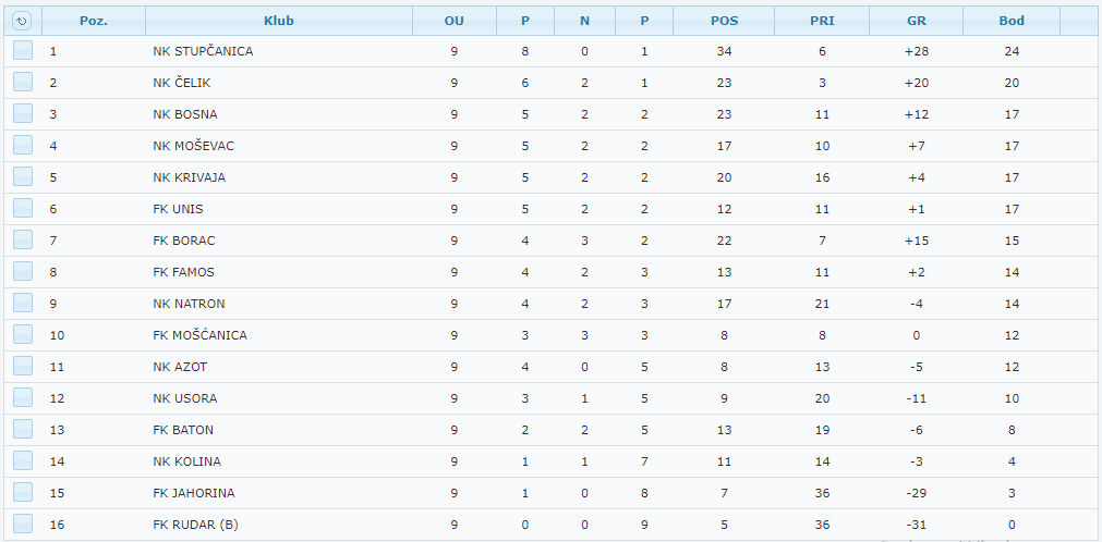 Poslije odigranih devet kola, naša ekipa se nalazi na drugom mjestu na tabeli sa ukupno osvojenih 20 bodova.