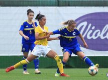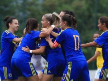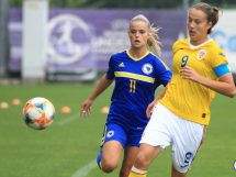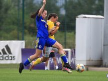 Prvu priliku imale su gošće u 13′ kad Madalina Zanfir izlazi sama pred gol bh. tima, ali Iman Dumanjić odlično interveniše i izbacuje loptu u korner.