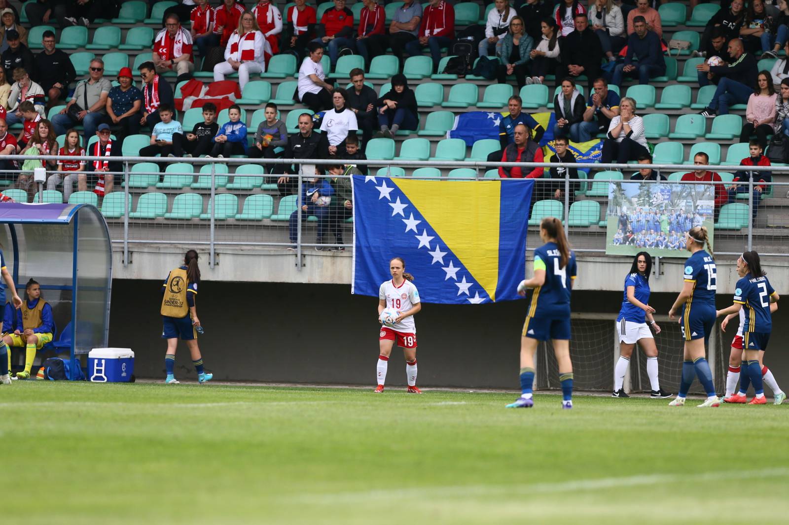Ženska U17 reprezentacija Bosne i Hercegovine poražena je danas u Zenici od odgovarajuće selekcije Danske sa 0:6 u susretu drugog kola grupe A Europskog prvenstva, javlja zvanična stranica Fudbalskog saveza BiH.