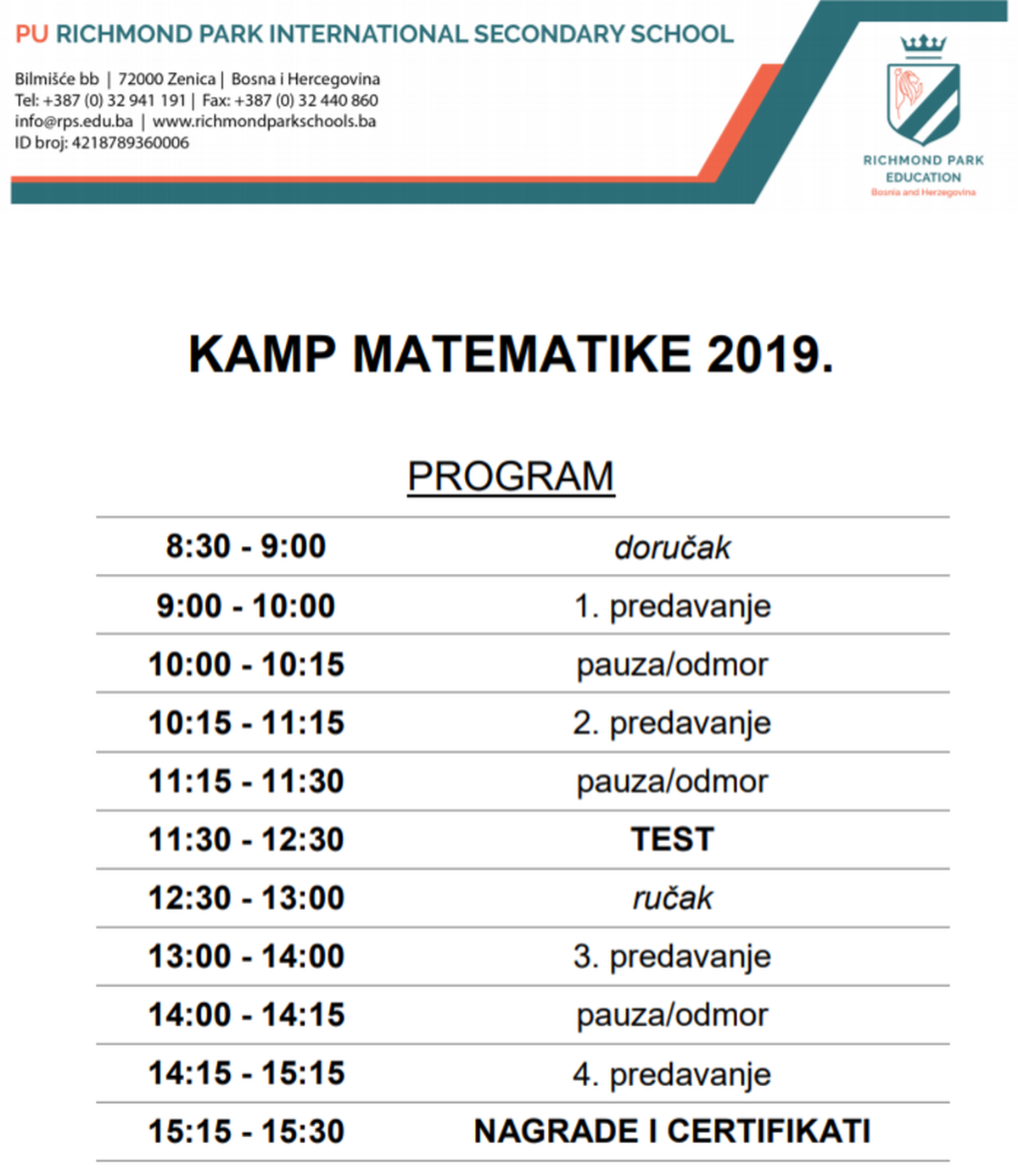 FOTO: Kamp matematike 2019. za učenike iz devet gradova – pročitajte imena najboljih – U organizaciji Richmond Park Secondary School Zenica (Međunarodne srednje škole u Zenici) održan je Kamp matematike za učenike osnovnih škola u cilju kvalitetnije pripreme za predstojeća općinska takmičenja.