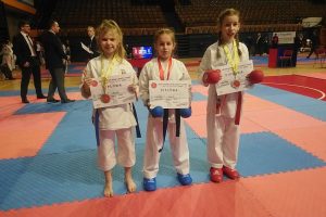 Naše starije početnice su osvojile medalje u katama Ema Suljić, Tea Rašić i Sarah Mlivić.