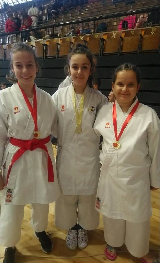 Naše starije početnice su osvojile medalje u katama Ema Suljić, Tea Rašić i Sarah Mlivić.