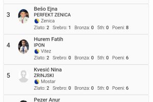 - Adila Adilović: visoko peto mjesto (4 medalje).