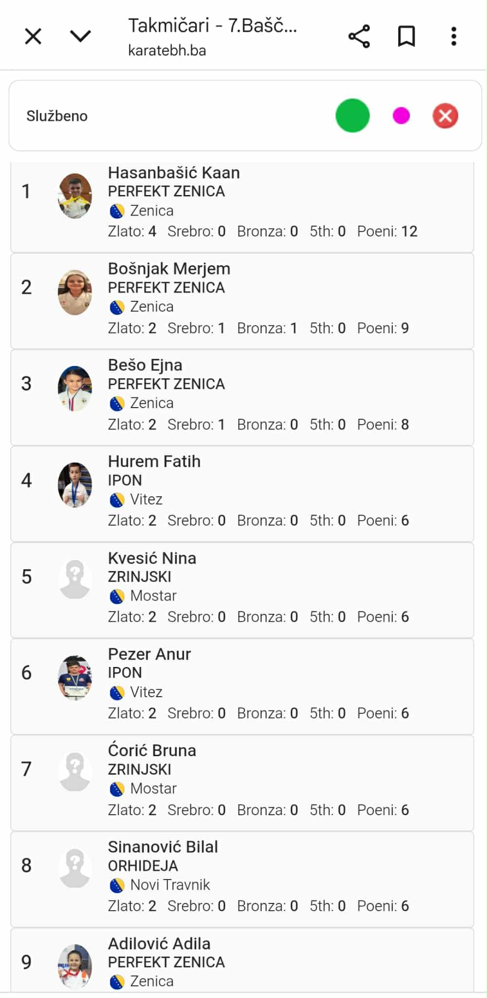 Rezultati Karate kluba Perfekt Zenica