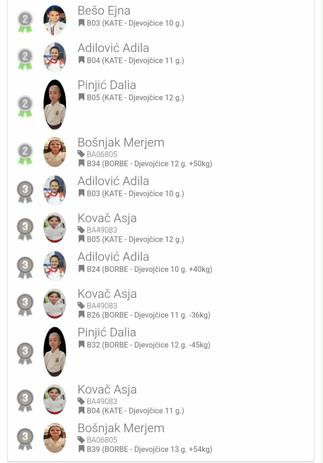 - Adilović Adila (BORBE, djevojčice 11 g. +44kg)