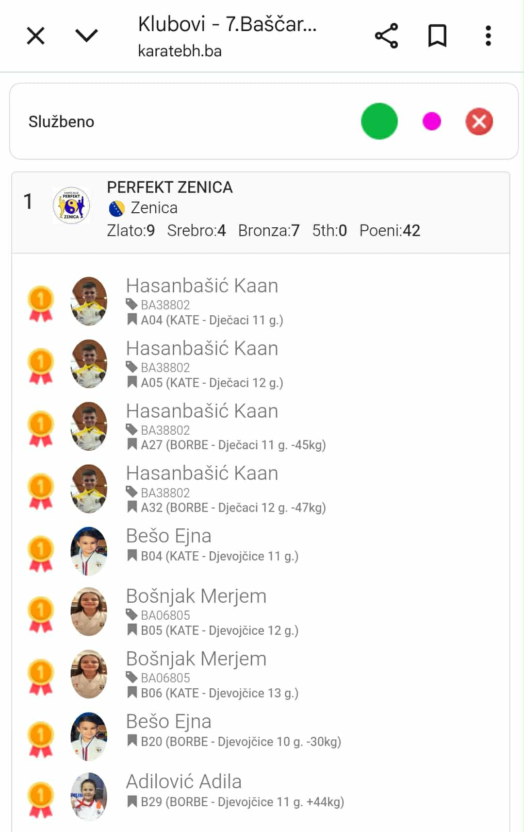 - Hasanbašić Kaan (4 zlata: KATE i BORBE, dječaci 11 i 12 g.)