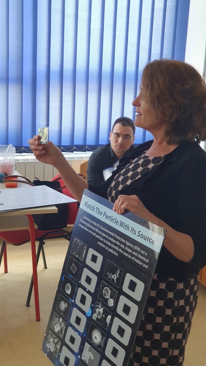 Viter je govorila o sistemu i načinu mjerenja zagađujućih čestica u SAD, propisima i mjerama koje se provode u njenoj, te interesovala o razumjevanju i poimanju učenika u vezi sa značajem opasnosti od zagađenja. Ona je, uokviru EPA-e menadžerica za angažman lokalne zajednice i promoviranje STEM projekta (nauka-tehnologija-