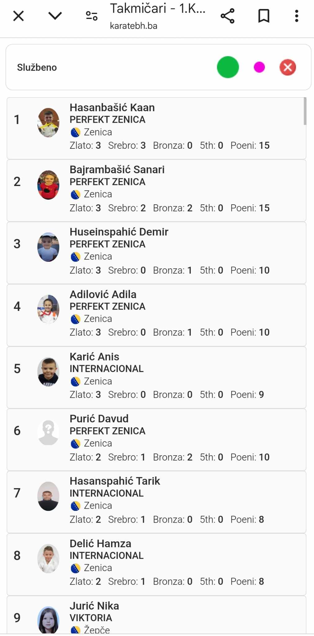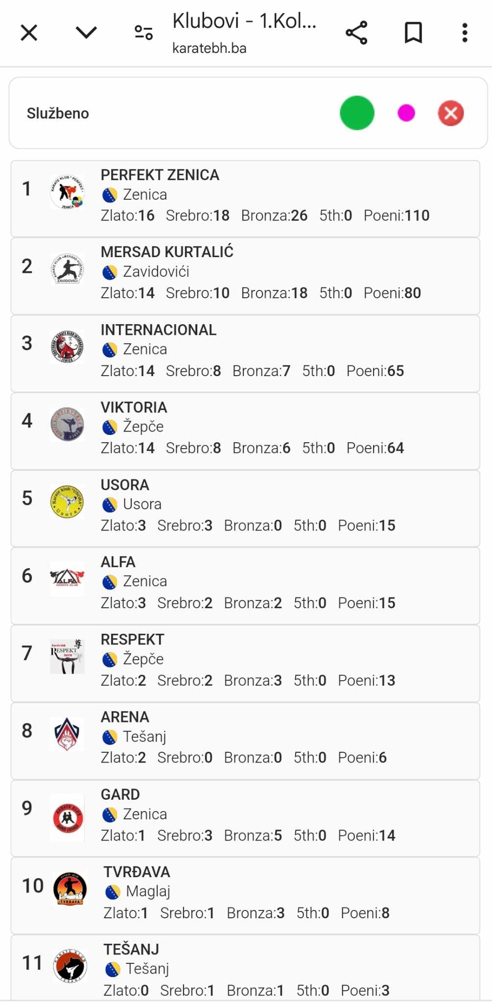 Naša takmičarka BAJRAMBAŠIĆ SANARI je proglašena za najuspjeniju takmičarku 1.KOLA ZDK LIGE sa osvojene 3 zlatne, 2 srebrene i 2 bronzane medalje, zato joj je organizator uručio zlatni pehar za NAJUSPJEŠNIJU TAKMIČARKU.