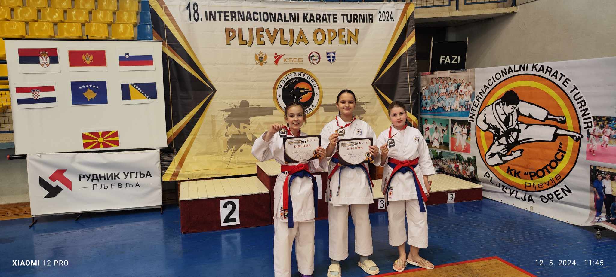 U nedjelju 12.05.2024.godine učestvovali smo na 18. Internacionalnom karate turniru “PLJEVLJA OPEN 2024” u Crnoj Gori. Turnir je okupio 7 drzava 37 klubova sa 528 prijava i 346 takmicara. Karate klubu *Potoci* Pljevlja idu sve pohvale za organizaciju i posebno veliko hvala za gostoprimstvo.