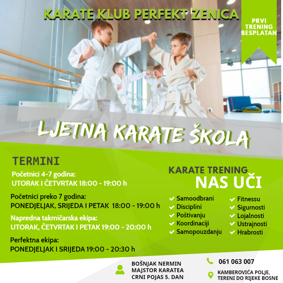 Klub nastavlja sa redovnim svakodnevnim treninzima i sa LJETNOM KARATE ŠKOLOM na Kamberovića polju, te pozivamo sve stare članove i svu djecu koja žele da nam se pridruže SVAKI RADNI DAN OD 18:00 h.
