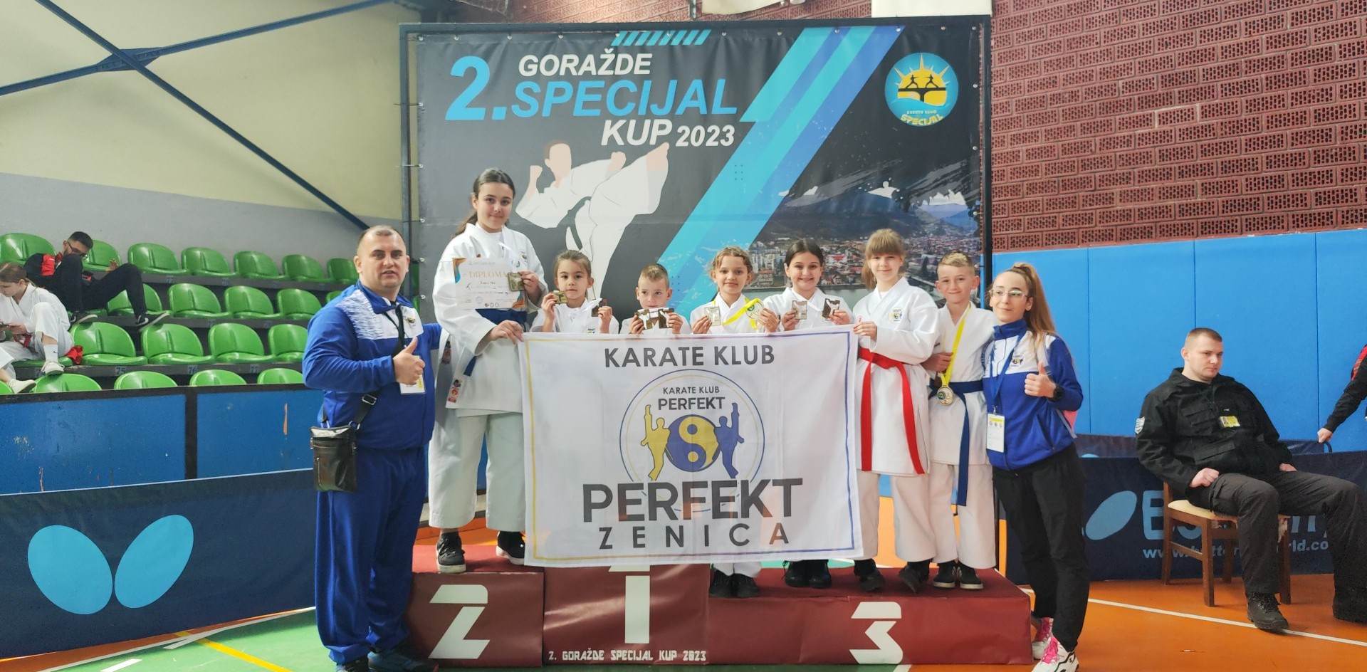 U subotu 08.04.2023.godine smo učestvovali na Međunarodnom karate turniru “2.Goražde Specijal kupu” u Goraždu. Turnir je okupio 550 takmičara sa 615 prijava iz 44 kluba iz 4 države. Organizatoru KK SPECIJAL idu sve pohvale za uspješnu organizaciju i toplu dobrodošlicu.