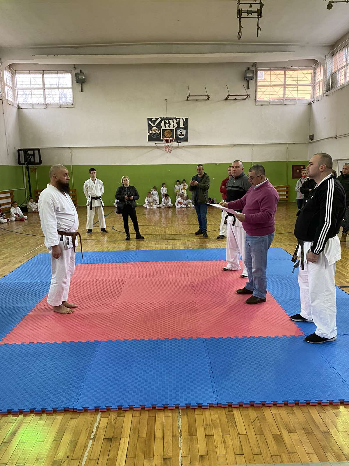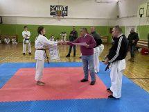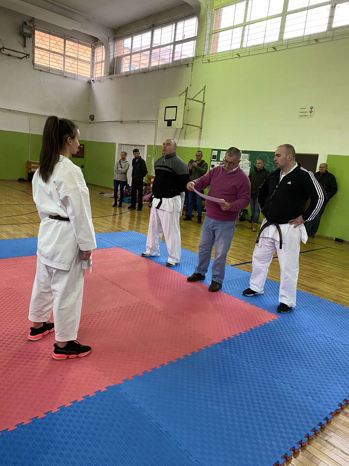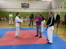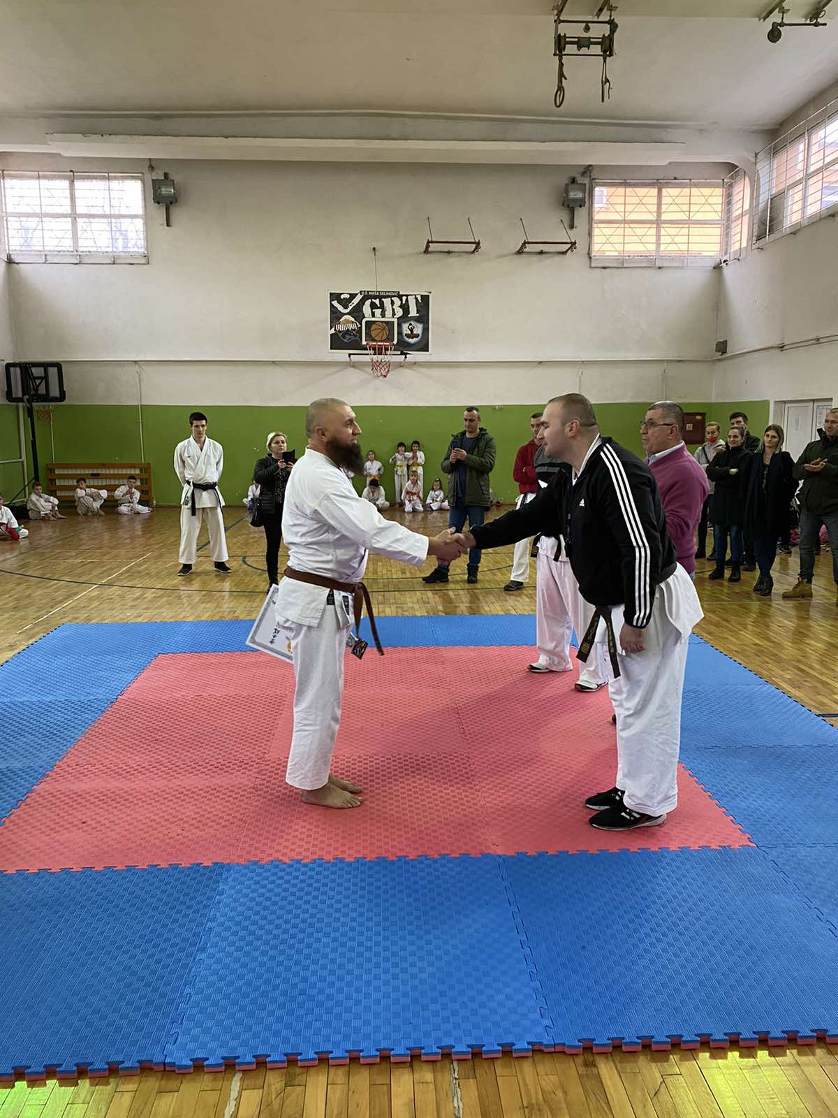 Po završenom seminaru održano je i polaganje ispita za majstorska zvanja, te smo imali čast ugostiti pionira karatea u našem gradu gosp.Omer Tabaković crni pojas 8.DAN, jedan od najuspješnijih zeničkih karate majstora koji je bio predsjednik komisije za majstorska zvanja,te su kandidati uspješno položili za zvanja majstora.