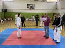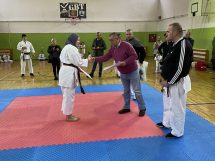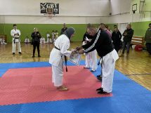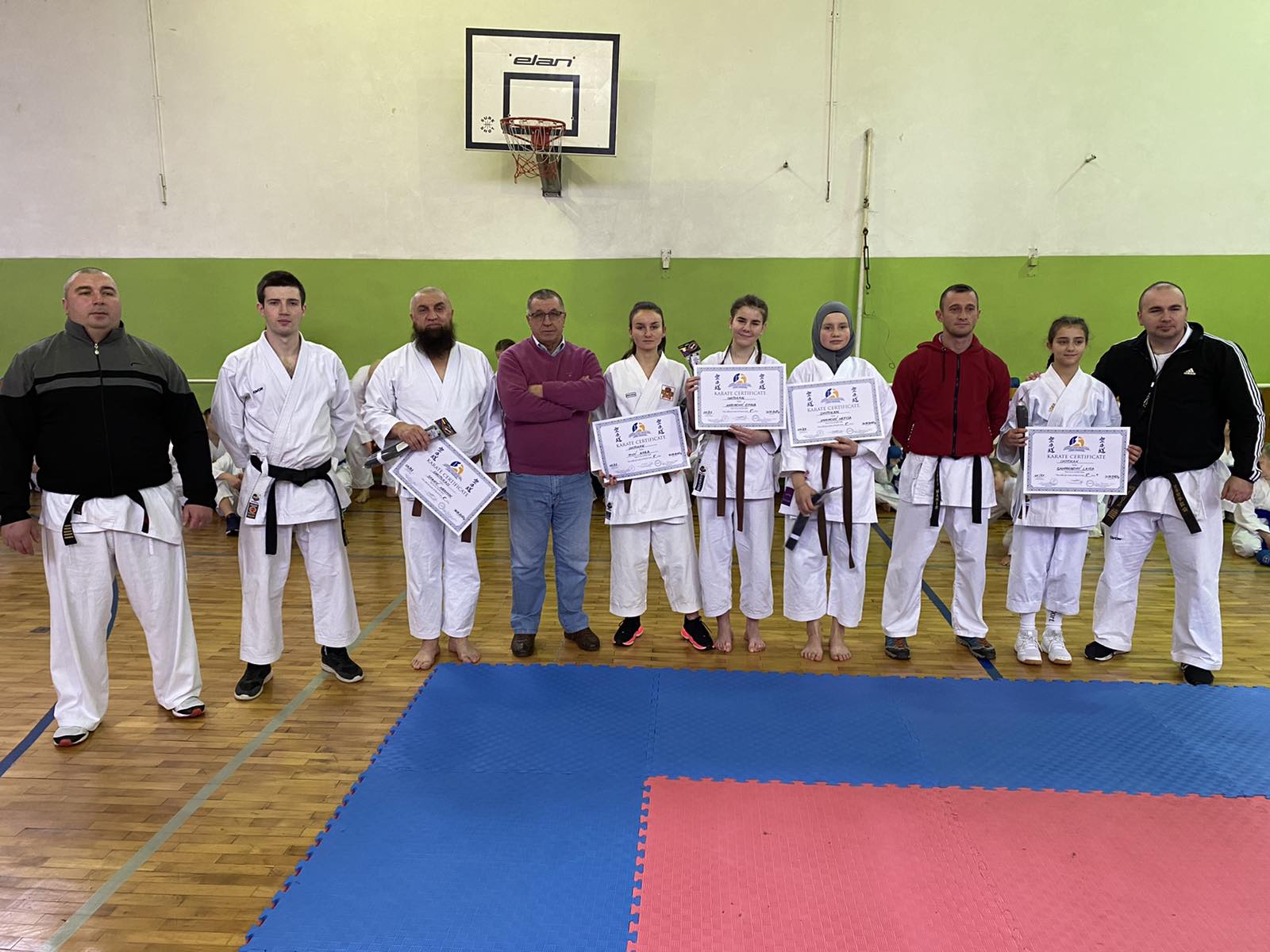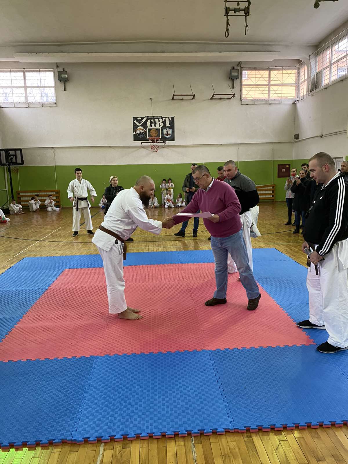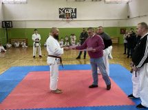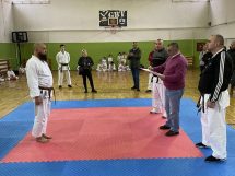 Po završenom seminaru održano je i polaganje ispita za majstorska zvanja, te smo imali čast ugostiti pionira karatea u našem gradu gosp.Omer Tabaković crni pojas 8.DAN, jedan od najuspješnijih zeničkih karate majstora koji je bio predsjednik komisije za majstorska zvanja,te su kandidati uspješno položili za zvanja majstora.