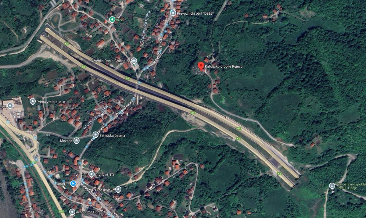 Kako je vidljivo na fotografija, neposredno ispod ovog puta se nalazi i dionica autoputa A1, koja još uvijek nije direktno ugrožena, ali joj prijeti opasnost, ako se padavine nastave i klizište ne stabilizira.