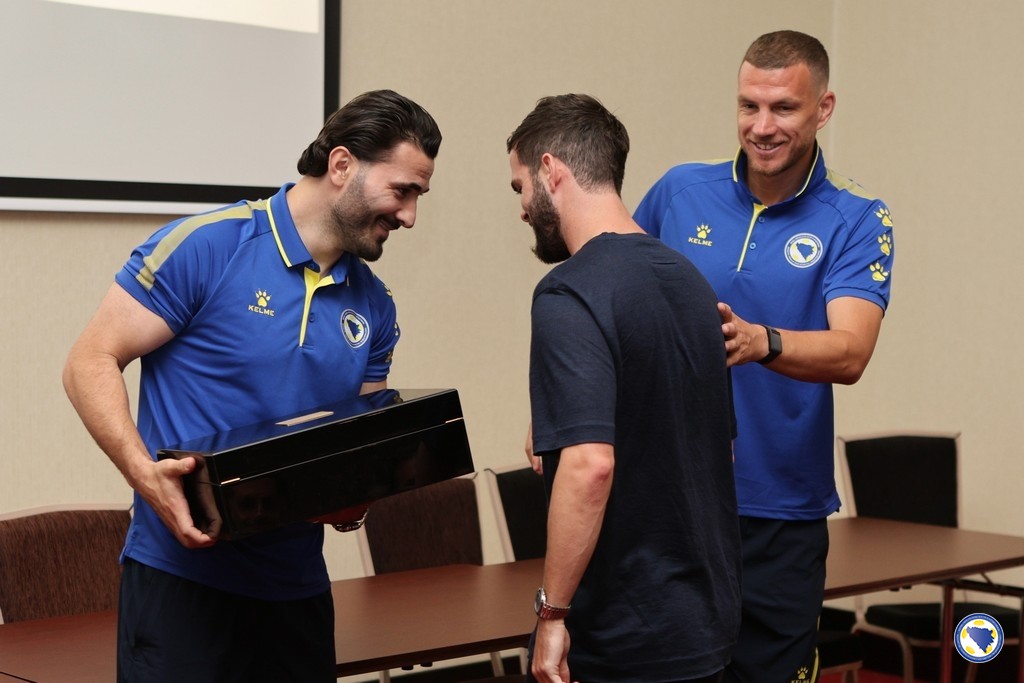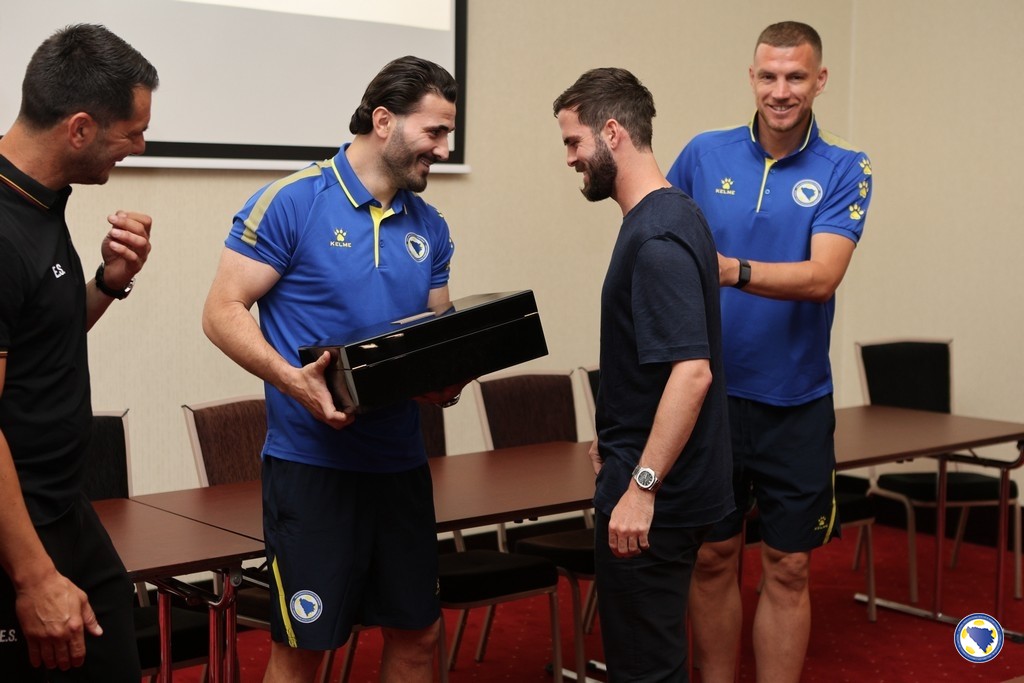Tom prilikom, igrači i članovi stručnog štaba predvođeni Emirom Spahićem i Sergejom Barbarezom i kapitenom Edinom Džekom, u prisustvu predsjednika NS/FS BiH Vice Zeljkovića, uručili su popularnom Miretu simboličan poklon u znak zahvalnosti za sve što je kroz godine pružio reprezentaciji Bosne i Hercegovine.