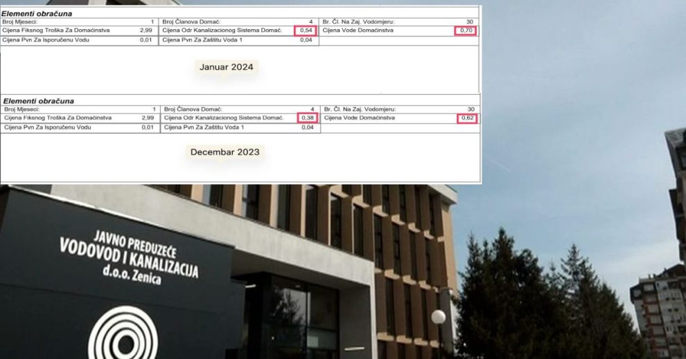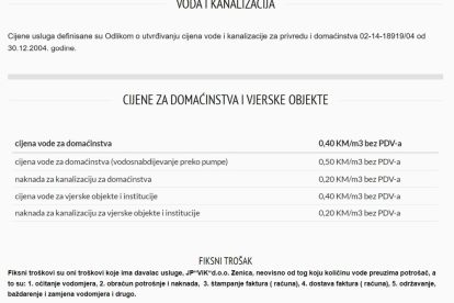 Od januarskih računa (koji ovih dana dolaze Zeničanima), kubik potrošene vode će vas koštati 1,24 KM (0,70 voda + 0,54 kanalizacija).