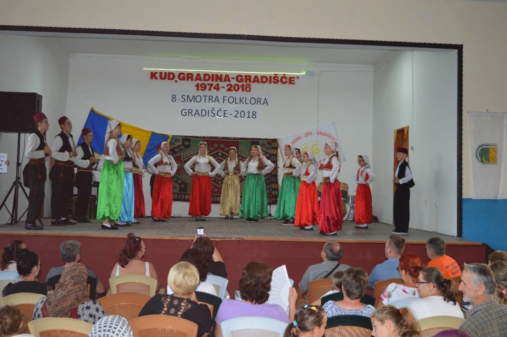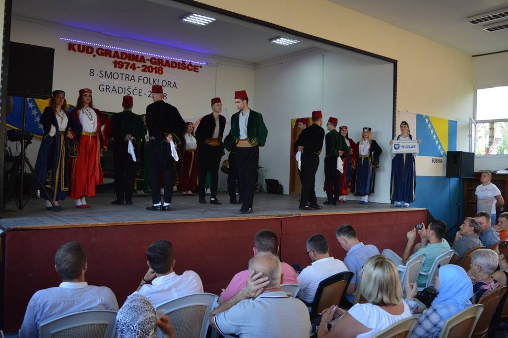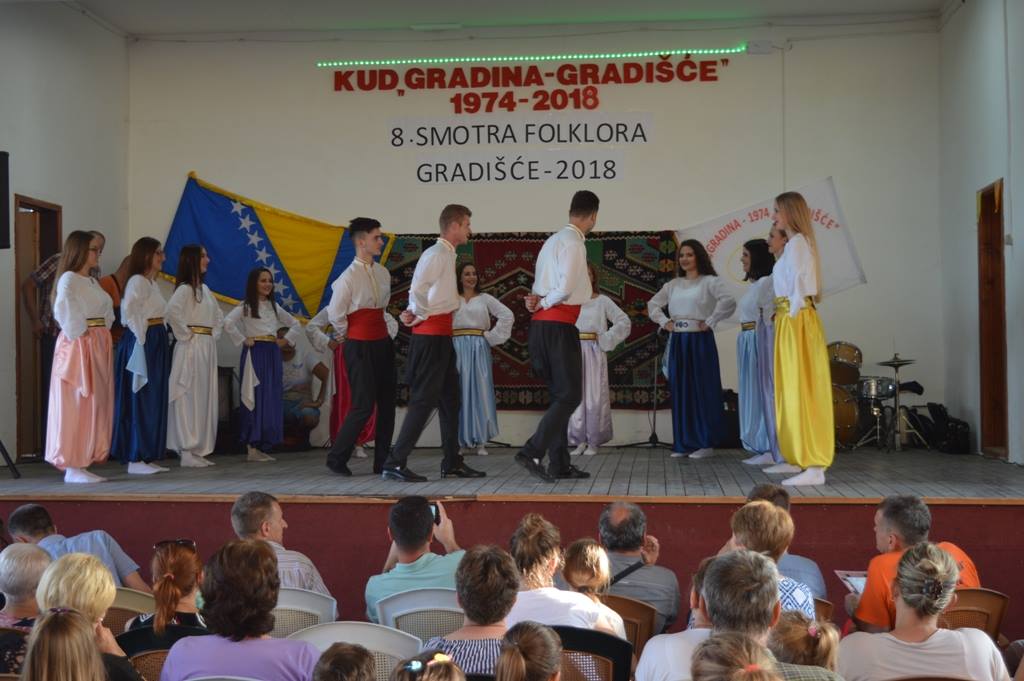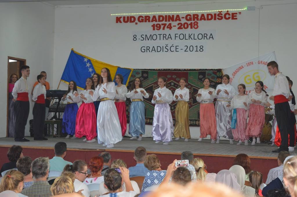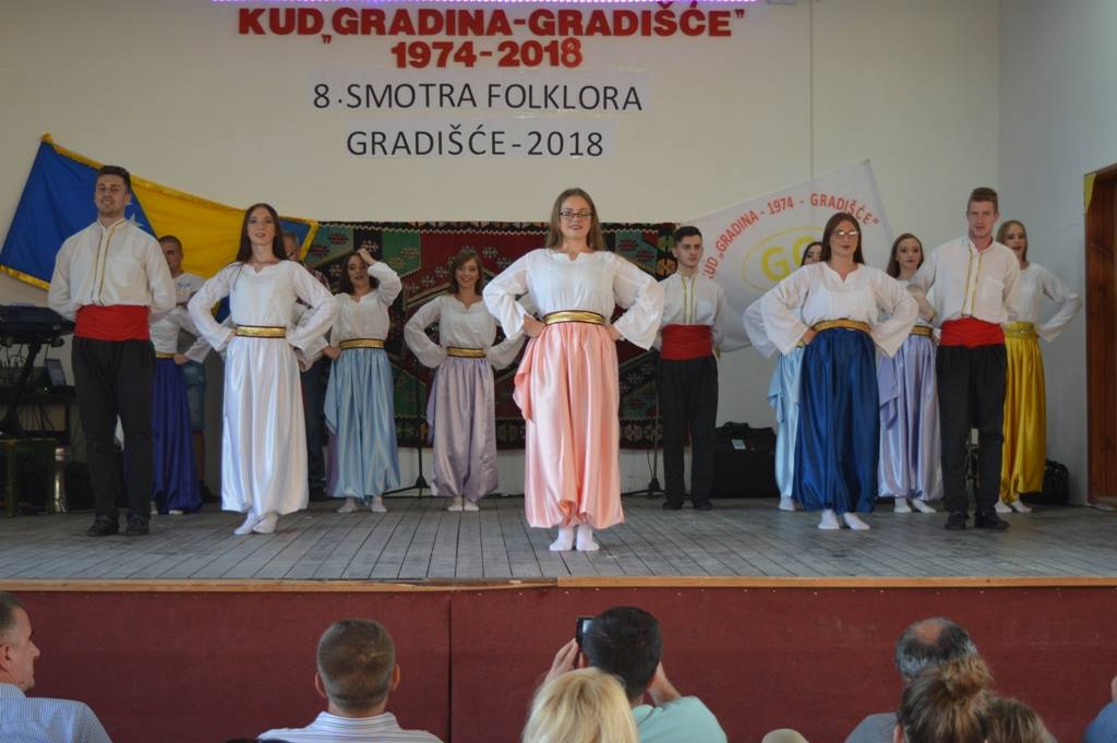 FOTO: KUD Gradina Gradišće – 8. smotra folklora – Gradišće 2018. – Kulturno-umjetničko društvo „Gradina“ iz Gradišća organiziralo je 8. smotru folklora – Gradišće 2018. Pored domaćina, pred mnogobrojnom publikom, predstavili su se članovi KUD „Kolo Dubravsko” iz Čapljine, KUD „Dobošnica“ iz Lukavca, KUD Mladost Suha iz Živinica, BZK „Preporod“ iz Viteza, KUD „Željezara“ iz Zenice te Ansambl Bosnia Folk.