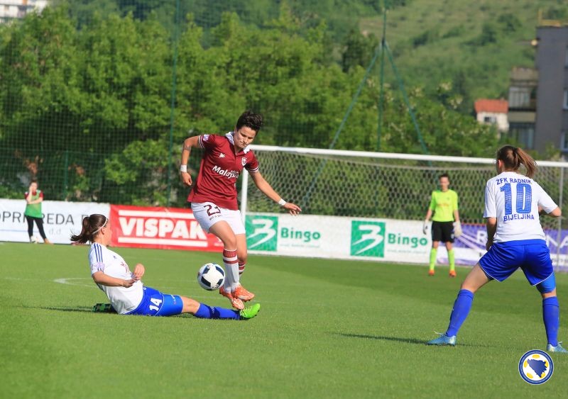 Treći pogodak postigla je Azra Numanović glavom nakon ubačaja Armise Kuč. Mogla je i Kuč u sudijskoj nadoknadi prvog poluvremena da se upiše u listu strijelaca, ali je lopta nakon njenog šuta završila na prečki Radnikovog gola.