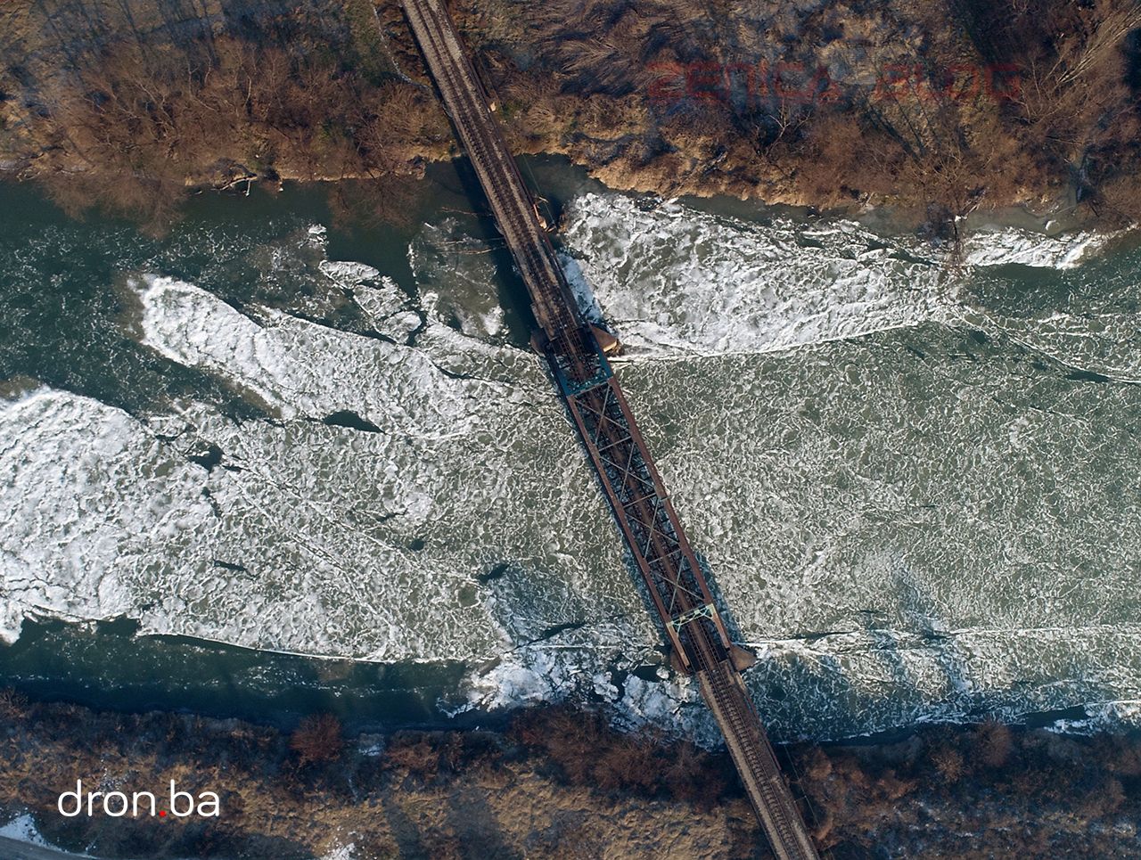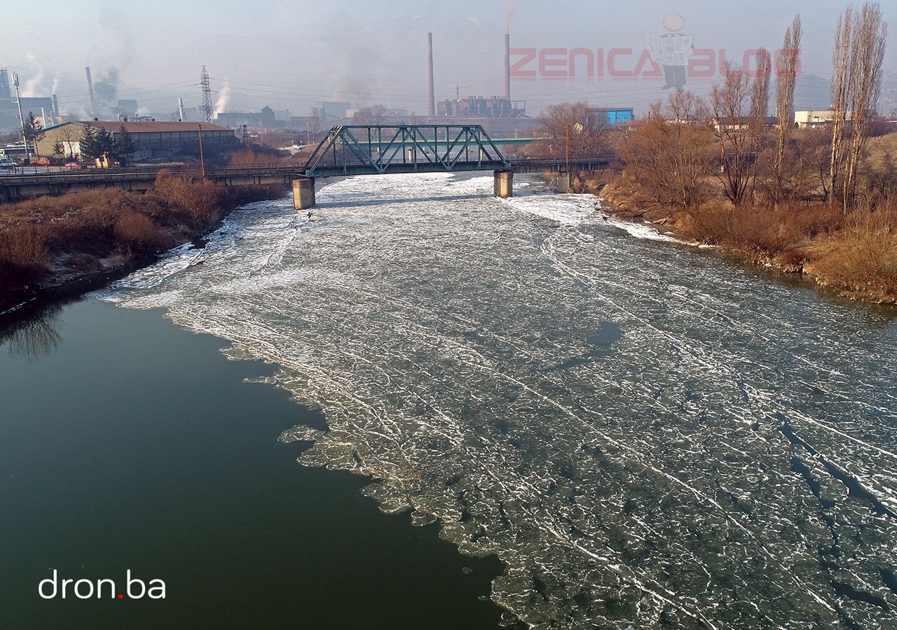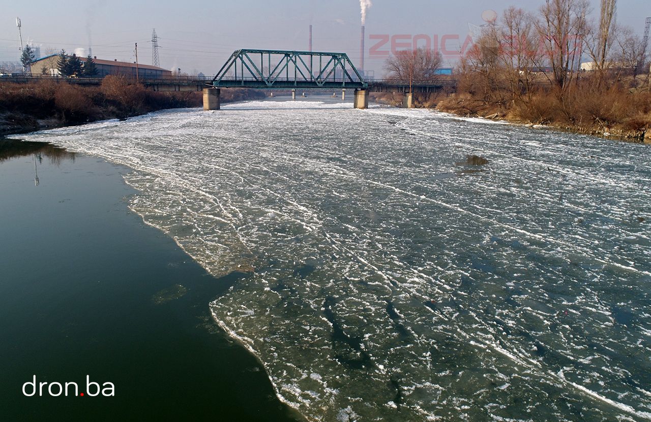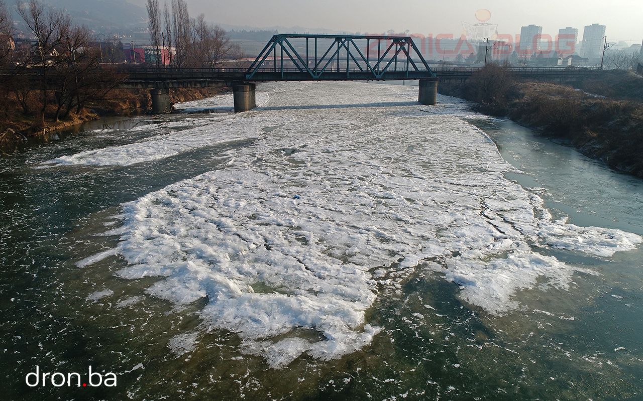 FOTO: Led okovao korito rijeke Bosne u Zenici – Naši prijatelji iz Dron.ba poklonili su nam set fotografija nastalih prvog dana 2017. godine na rijeci Bosni kod Zenice. Višednevni temperature ispod nule uzrokovale su da dio površine rijeke Bosne zaledi.